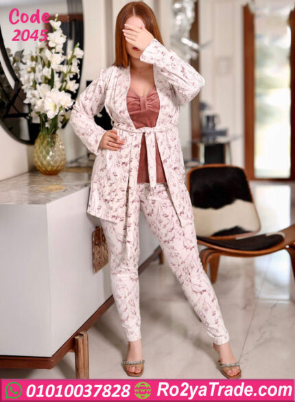 طقم بيجامة شتوي بالروب مشجر أنيق – كود 2080