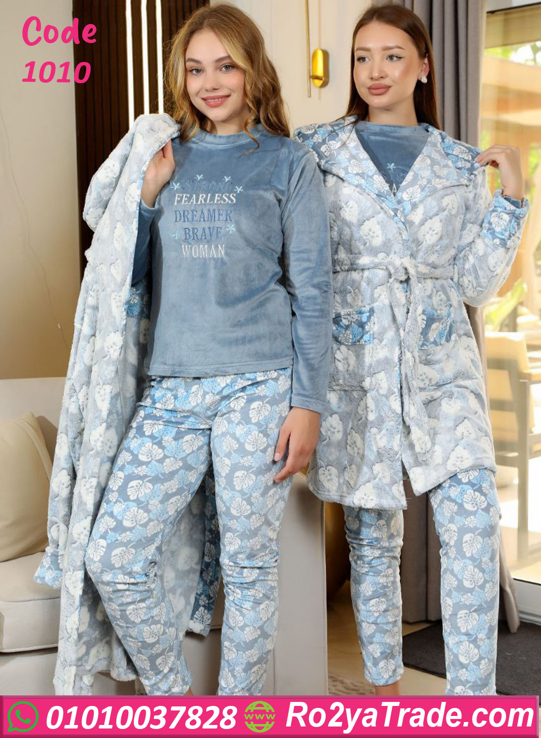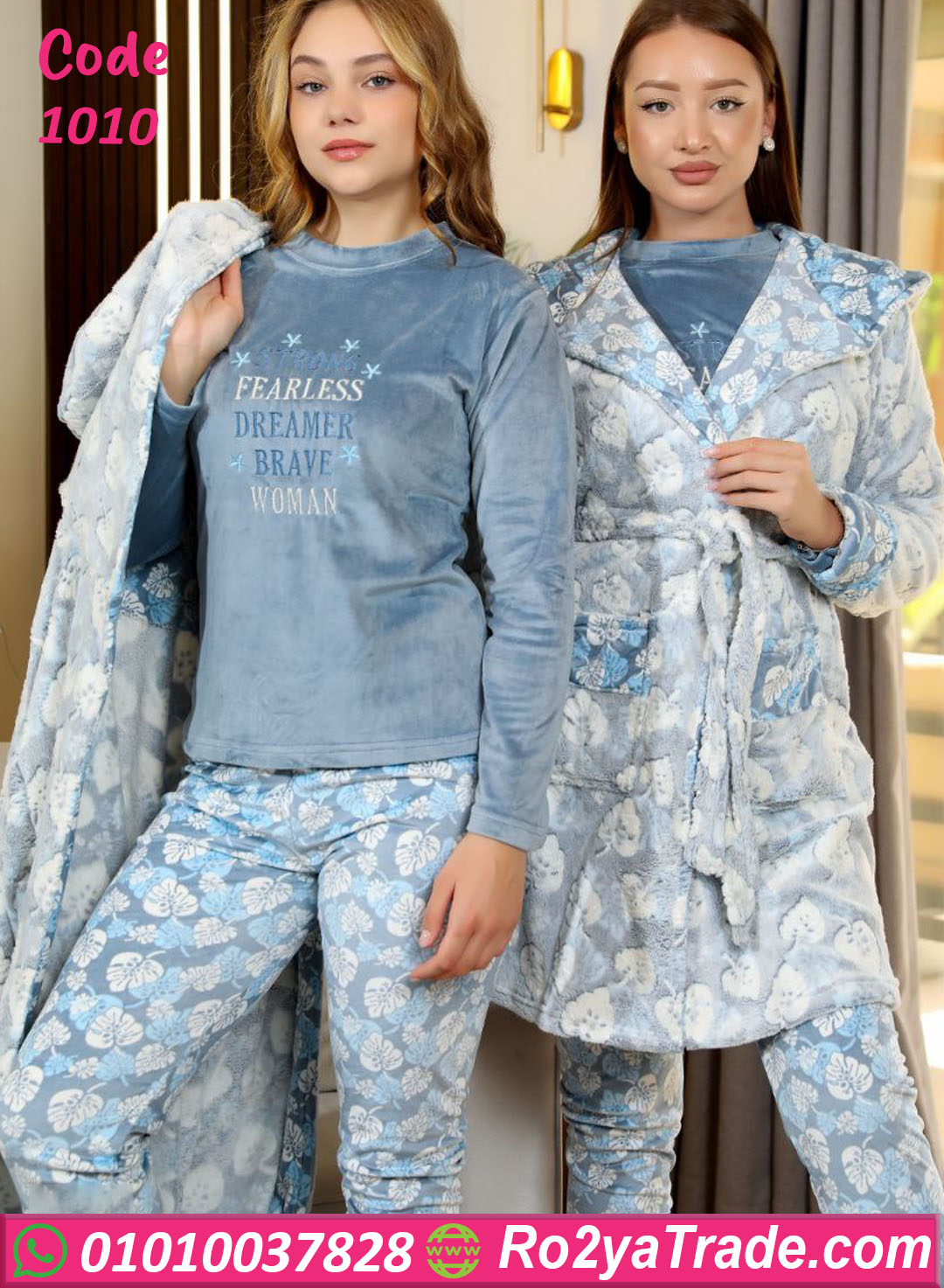 بيجامة كود 1010 من Tamara Home Wear مصممة مخصوص عشان تجمع بين الدفا والشياكة 💕 الخامة القطيفة بتدي ملمس ناعم ومريح جدًا على الجسم، والتصميم الأنيق اللي فيه كاب طويل بيدي لوك عملي وأنثوي في نفس الوقت 😍 البنطلون خفيف بستايل عصري، والتيشيرت بتطريزة ناعمة تضيف لمسة جاذبية، تقدري تلبسيها في البيت أو حتى وقت الاسترخاء بعد يوم طويل ☕ اختاريها وهتكون من أكتر القطع المريحة والمفضلة عندك في الشتاء!
