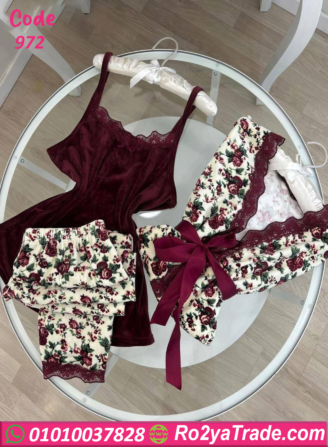 بيجامة قطيفة مضلع حريمي 3 قطع – كود 972