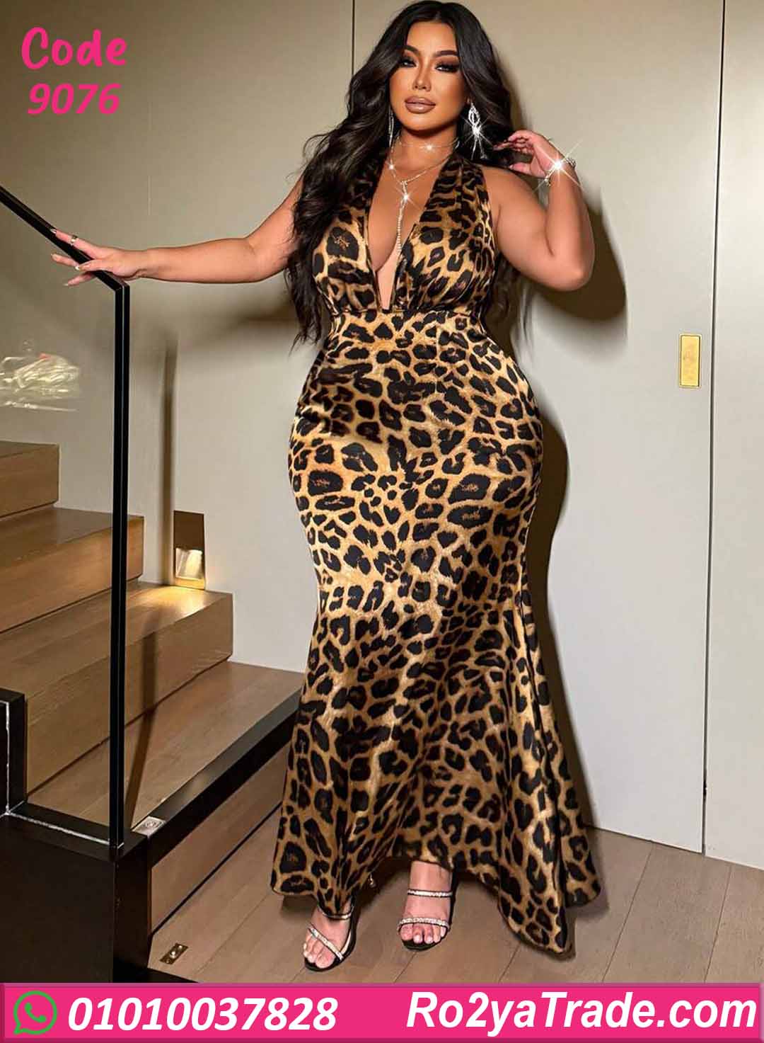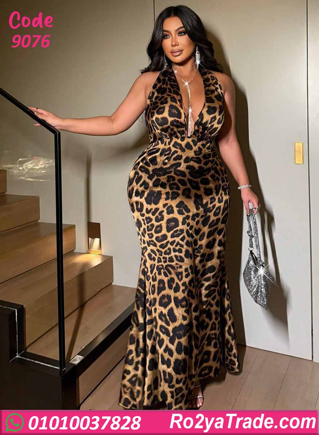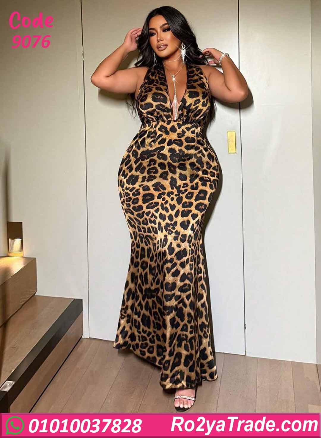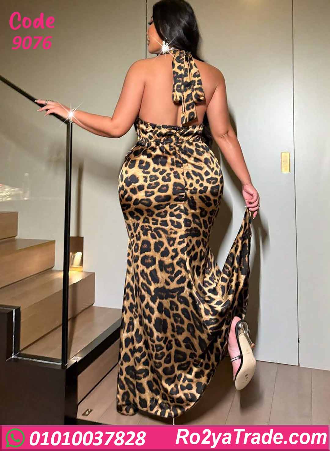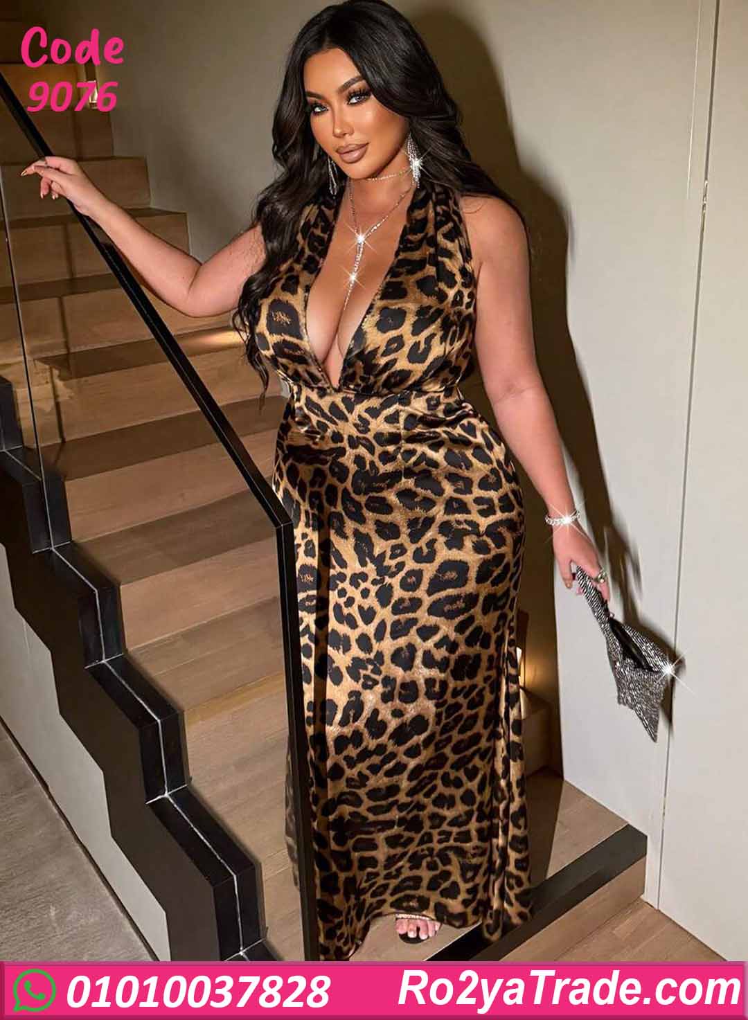 دريس صيفي طويل بتصميم جريء وأنثوي مميز بنقشة تايجر جذابة، بيدي إطلالة لافتة ومليانة ثقة، مناسب للسهرات الصيفية والخروجات الخاصة ولمحبات الستايل الجريء.
