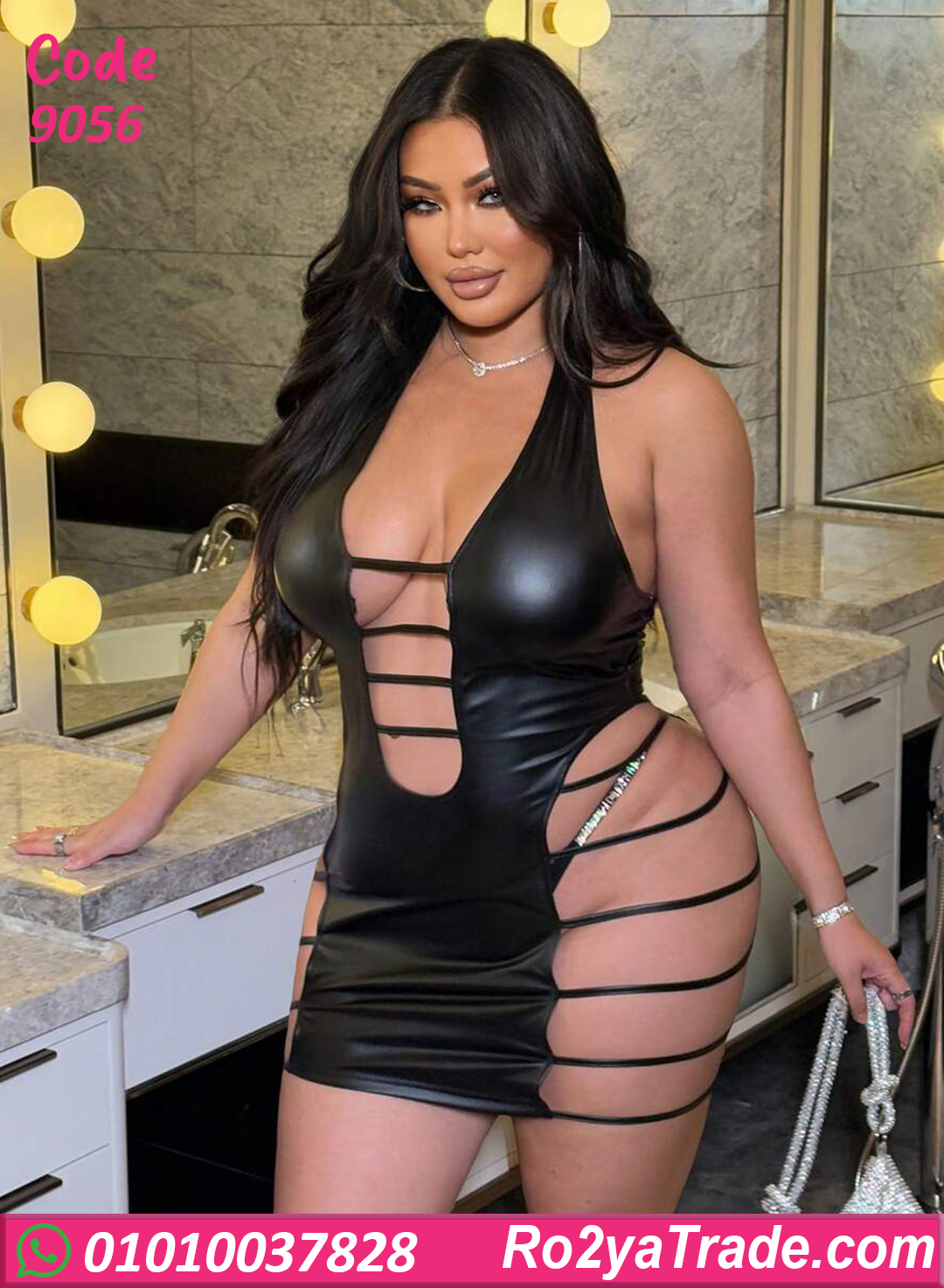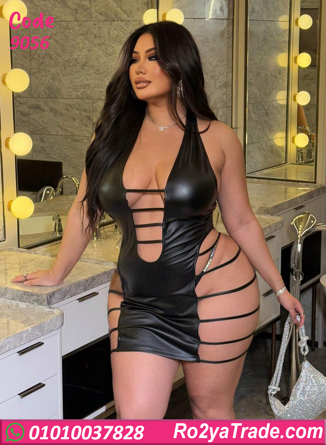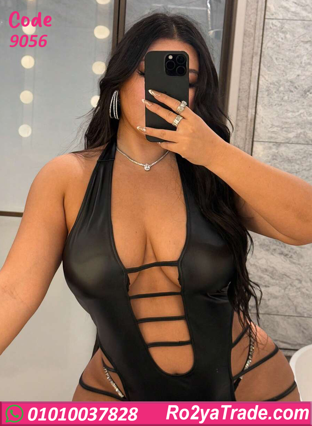 لانجري جلد جريء بتصميم مثير وفتحات أنثوية جريئة بتبرز القوام وتدي إطلالة قوية وجذابة، مناسب للسهرات الخاصة وللإطلالات الجريئة في البيت.