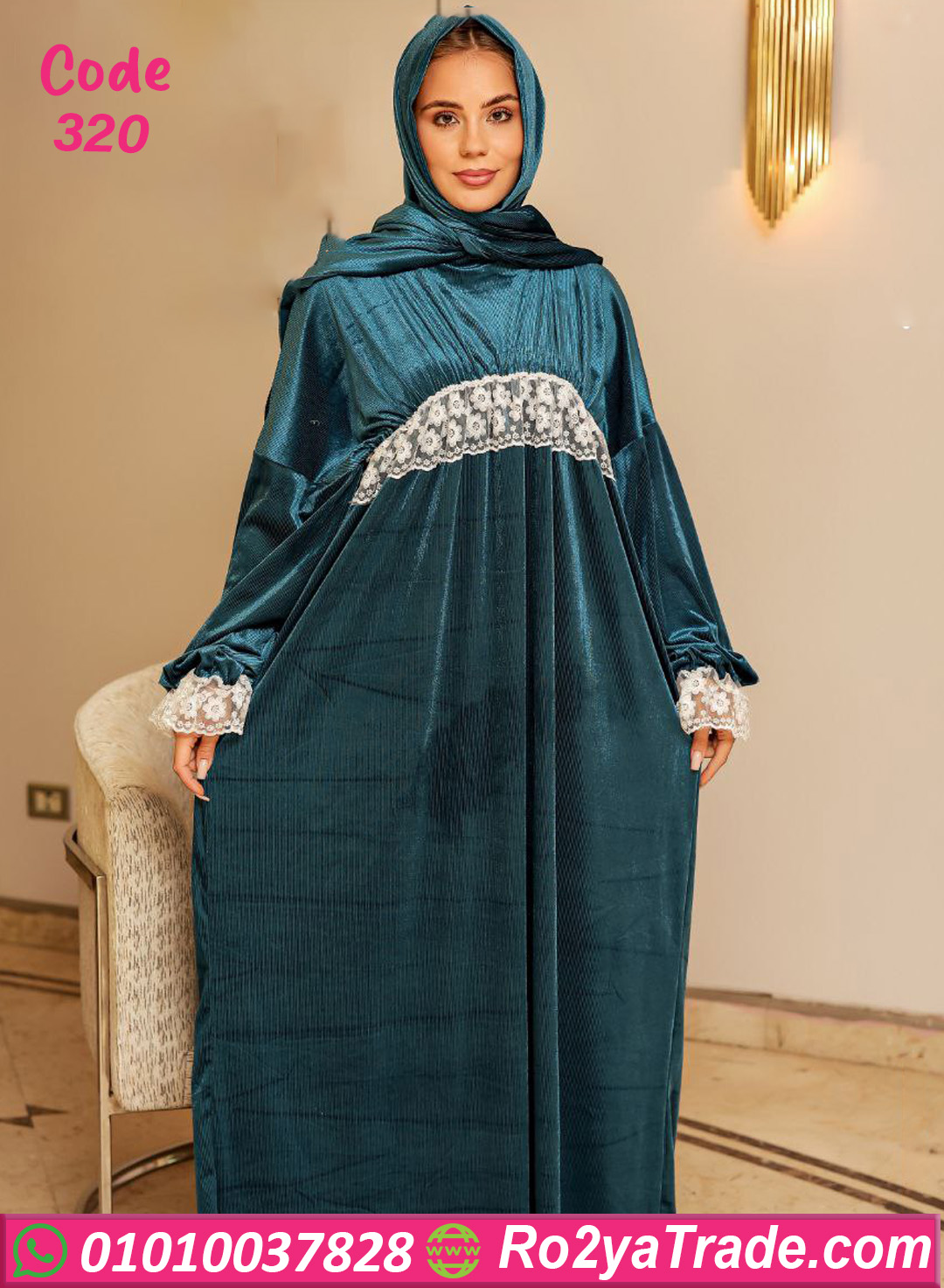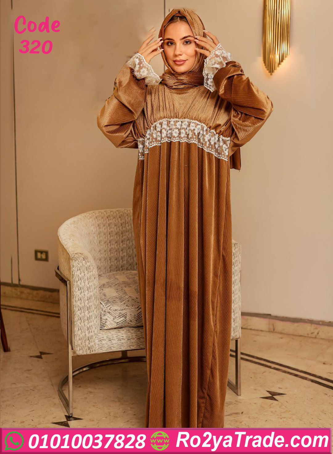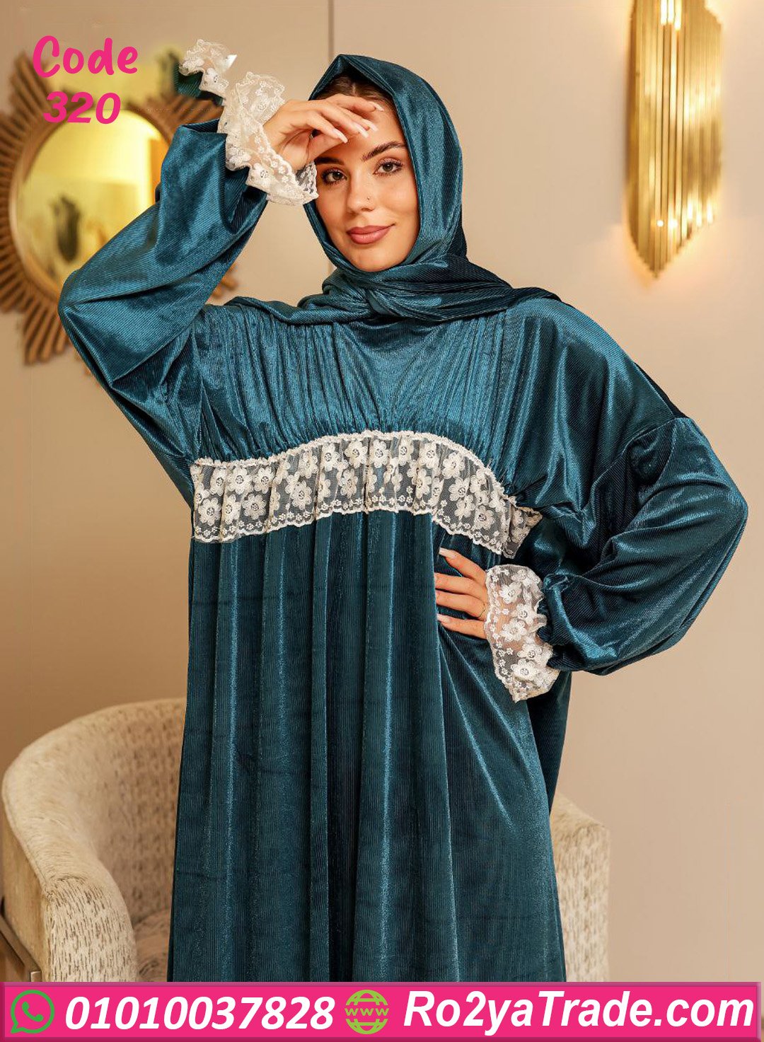 لو بتدوري على اسدال عملي وفي نفس الوقت شكله راقي، فموديل كود 320 اختيار ممتاز ليكي. الاسدال معمول من خامة قطيفة ناعمة ودافية، بتدي إحساس بالراحة وبتناسب الجو البارد جدًا. التصميم واسع ومريح، بيدي حرية حركة كاملة، ومزين بتفصيلة دانتيل ناعمة على الصدر والأكمام بتدي لمسة أنوثة وشياكة من غير تكلف. مناسب للصلاة وفي نفس الوقت ينفع للخروج والمشاوير السريعة، وشكله مرتب طول الوقت. الخامة ناعمة على البشرة ومناسبة للبس لساعات طويلة من غير أي إزعاج، وده يخليه اختيار عملي لكل يوم وكمان مناسب كهدية. 🧺 نصائح الحفاظ على المنتج: يُغسل في الغسالة على برنامج هادي يُفضل الغسيل على البارد عدم استخدام مبيضات يُكوى على درجة حرارة منخفضة يُفضل قلب القطعة قبل الغسيل للحفاظ على الخامة 🚚 الشحن والتوصيل: شحن سريع لكل المحافظات التوصيل خلال 2 إلى 5 أيام عمل الدفع عند الاستلام متاح 🔁 سياسة الاستبدال والاسترجاع: الاستبدال أو الاسترجاع خلال 14 يوم يشترط أن يكون المنتج بحالته الأصلية لا يوجد استبدال أو استرجاع على القطع المستخدمة اطلبي دلوقتي الاسدال من موقعنا 🌐 Ro2yaTrade.com 📱 أو كلمينا واتساب على 01010037828