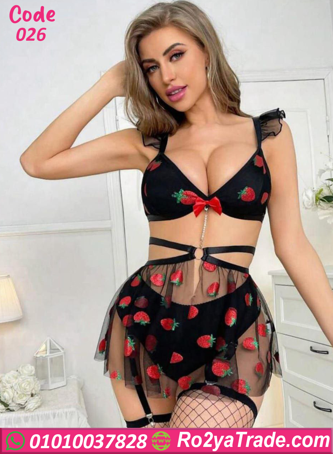 لانجري حريمي كود 026 من ماركة Paris بتصميم أنيق يجمع بين الجاذبية واللمسة الأنثوية الناعمة. يتميز الطقم بتفاصيل مميزة مع نقشة الفراولة على قماش التل الشفاف مما يمنح القطعة مظهرًا مختلفًا وجذابًا.