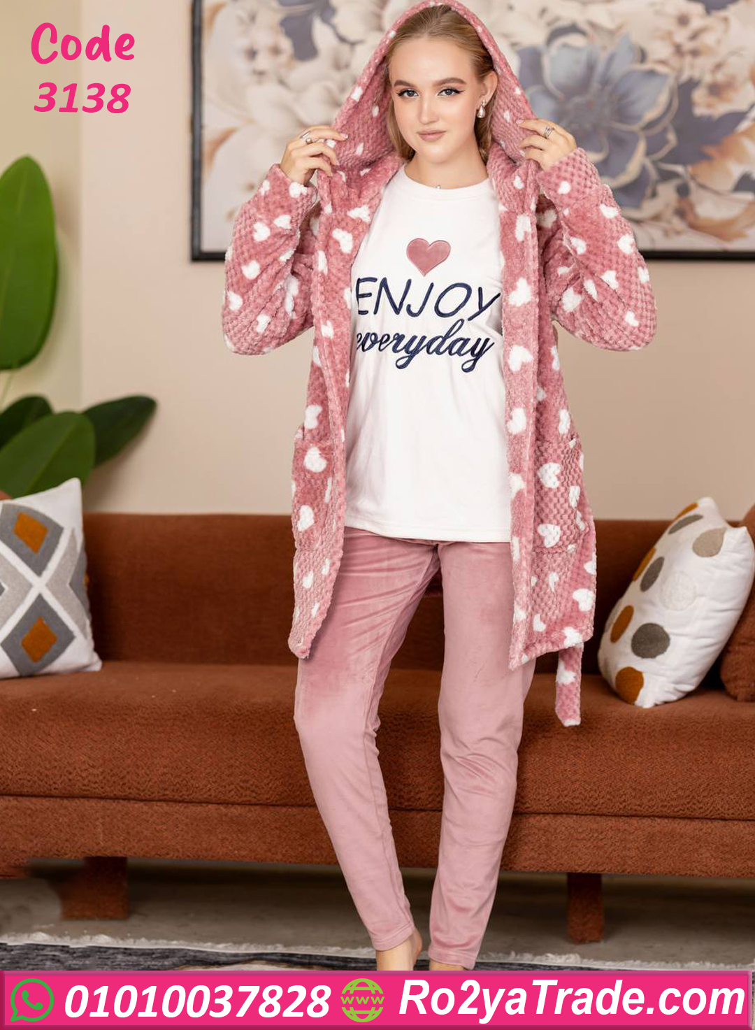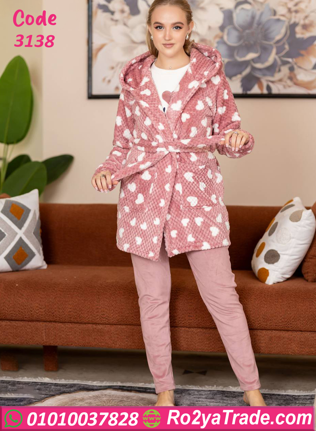 • روب قطيفة دافي بنقشة قلوب تحفة ✨