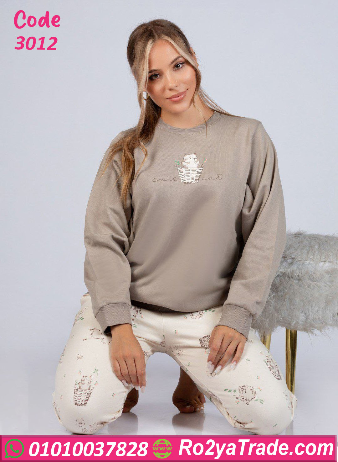 بيجامة حريمي شتوي بخامة قطيفة خفيفة ومريحة جدًا، بتدي دفا وأناقة في نفس الوقت.