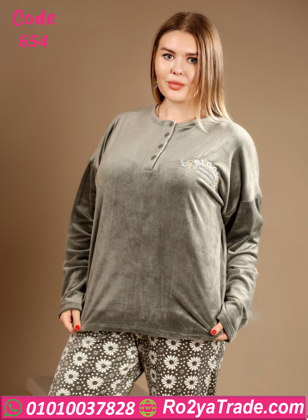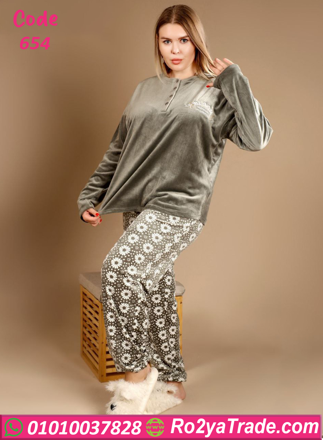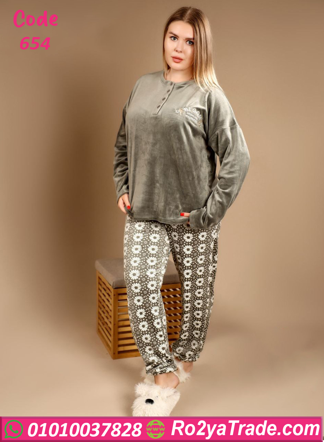 بيجامة بيج سايز قطيفة شتوي – كود 654