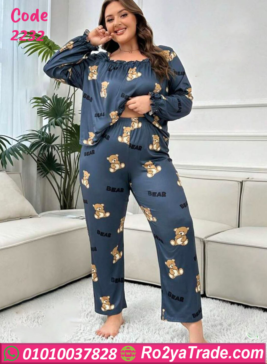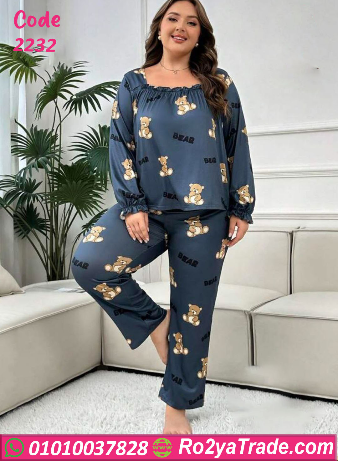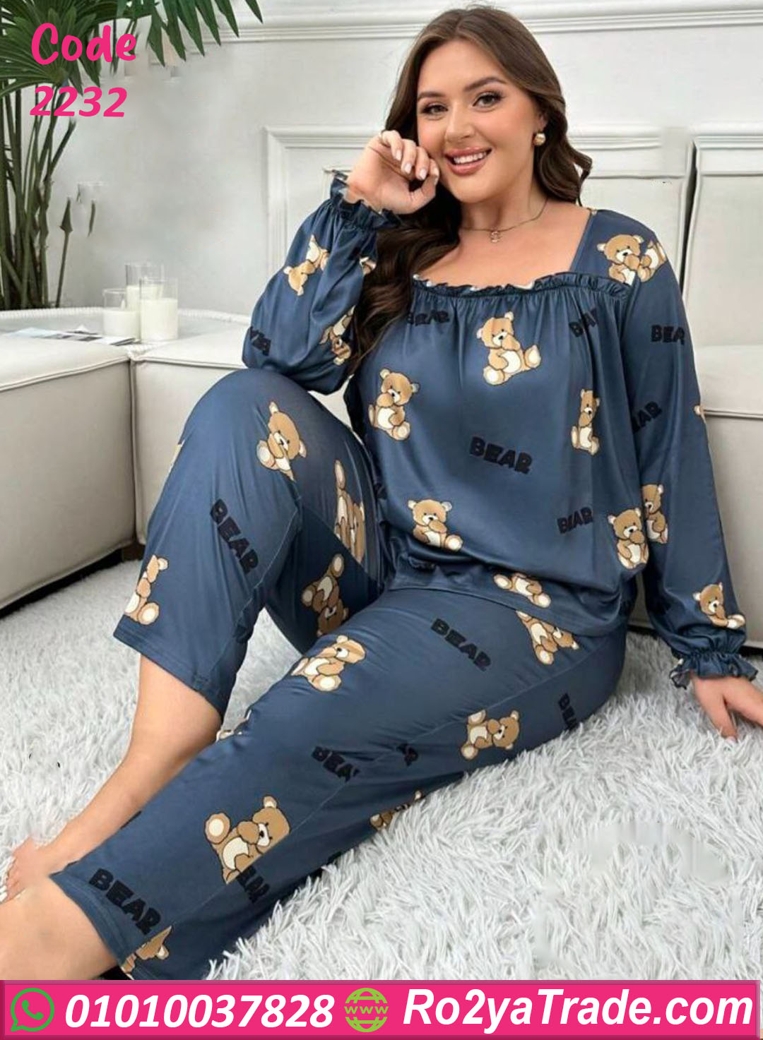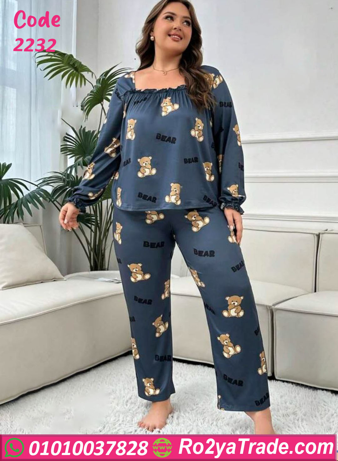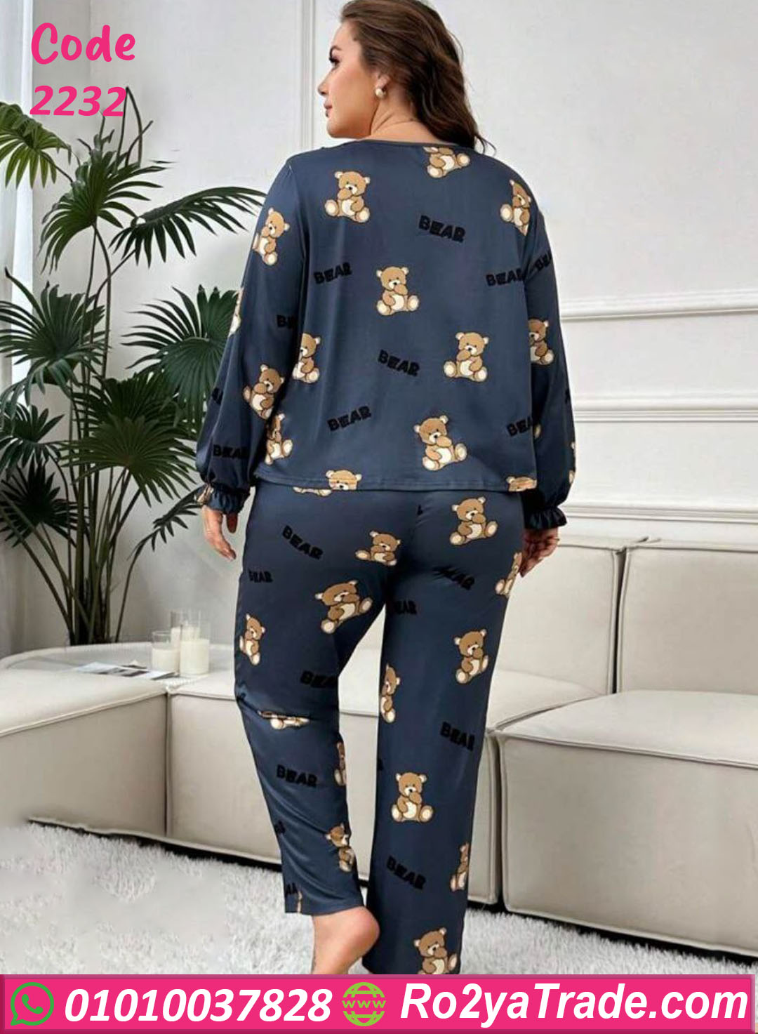 بيجامة شتوي ستان ناعمة جدا مطبوعة بدبدوب لطيف، خامة مريحة وشيك جدا من ماركة LARA،