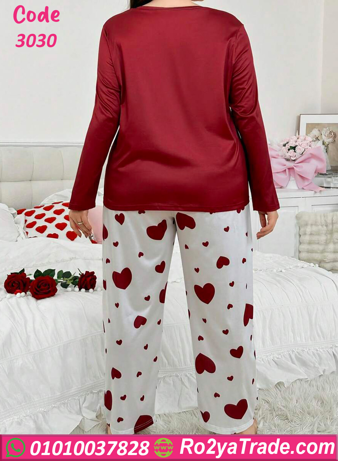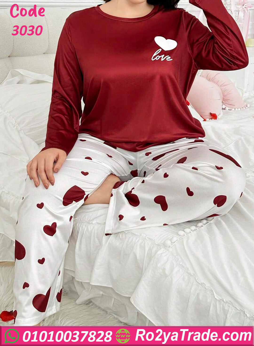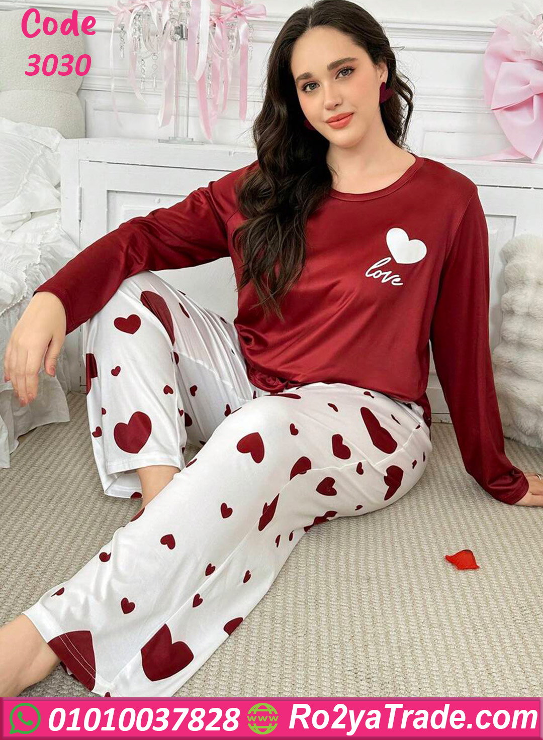 بيجامة حريمي بطبعة قلوب – كود 3030
