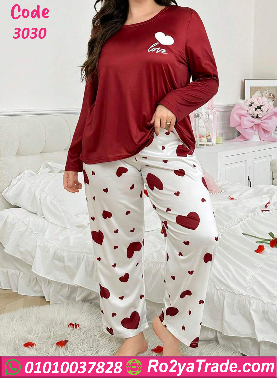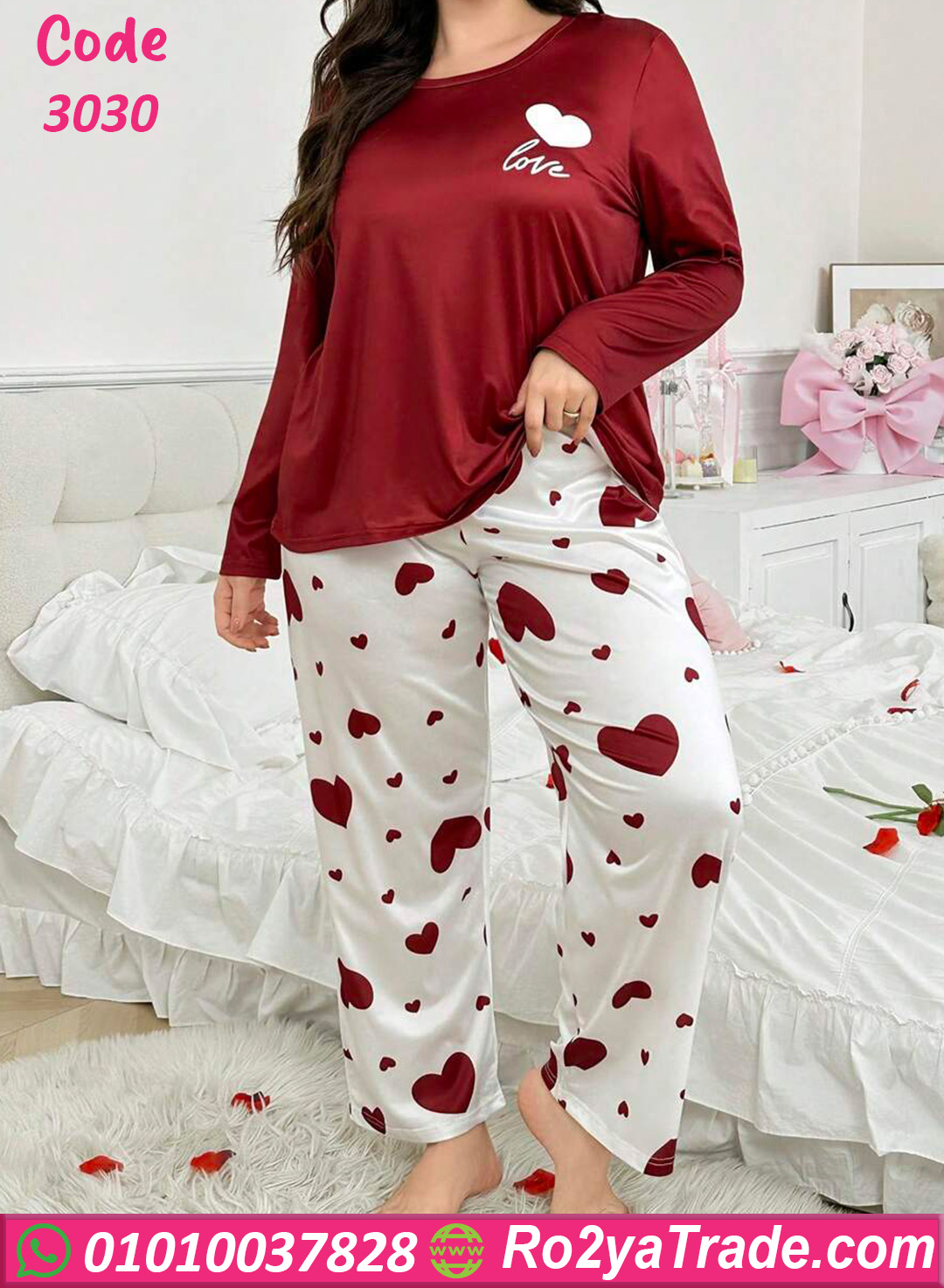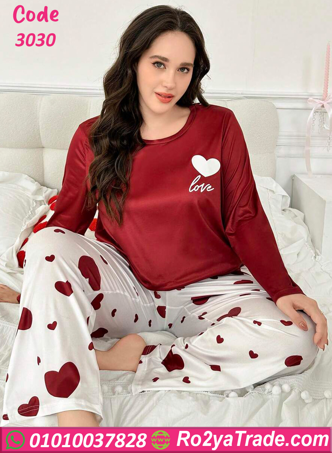 بيجامة حريمي بطبعة قلوب – كود 3030