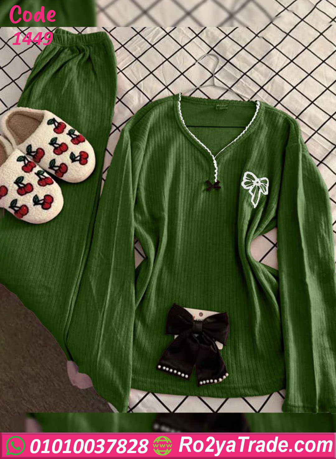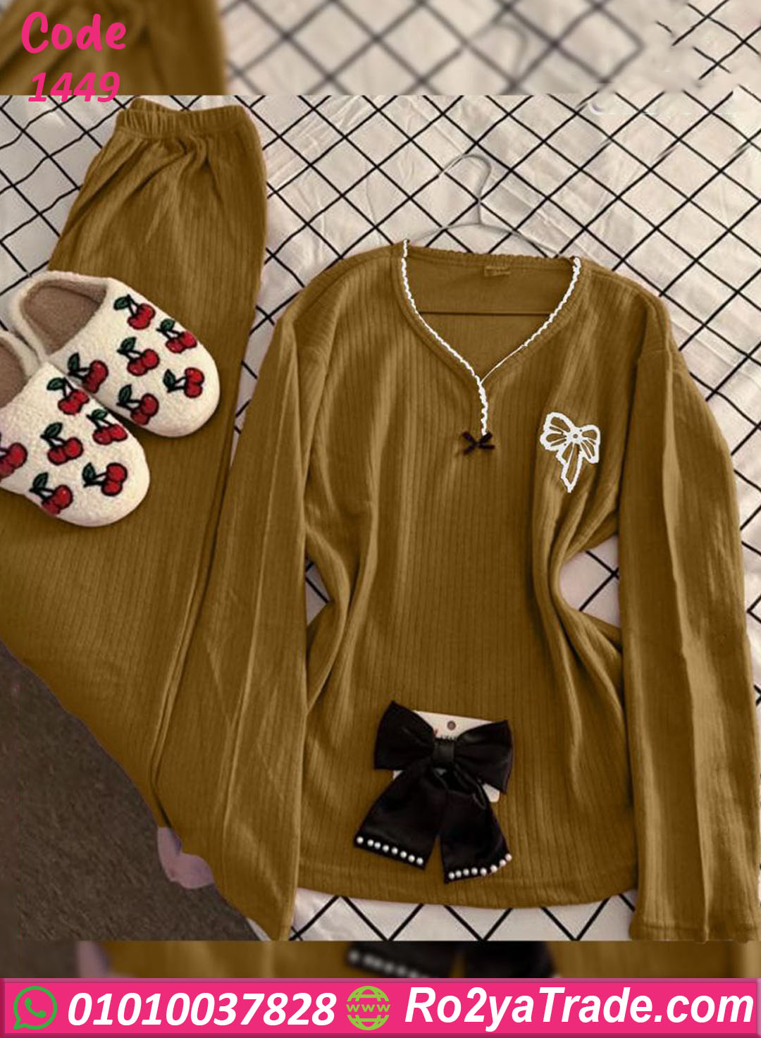بيجامة حريمي بفيونكة قطعتين – كود 1449