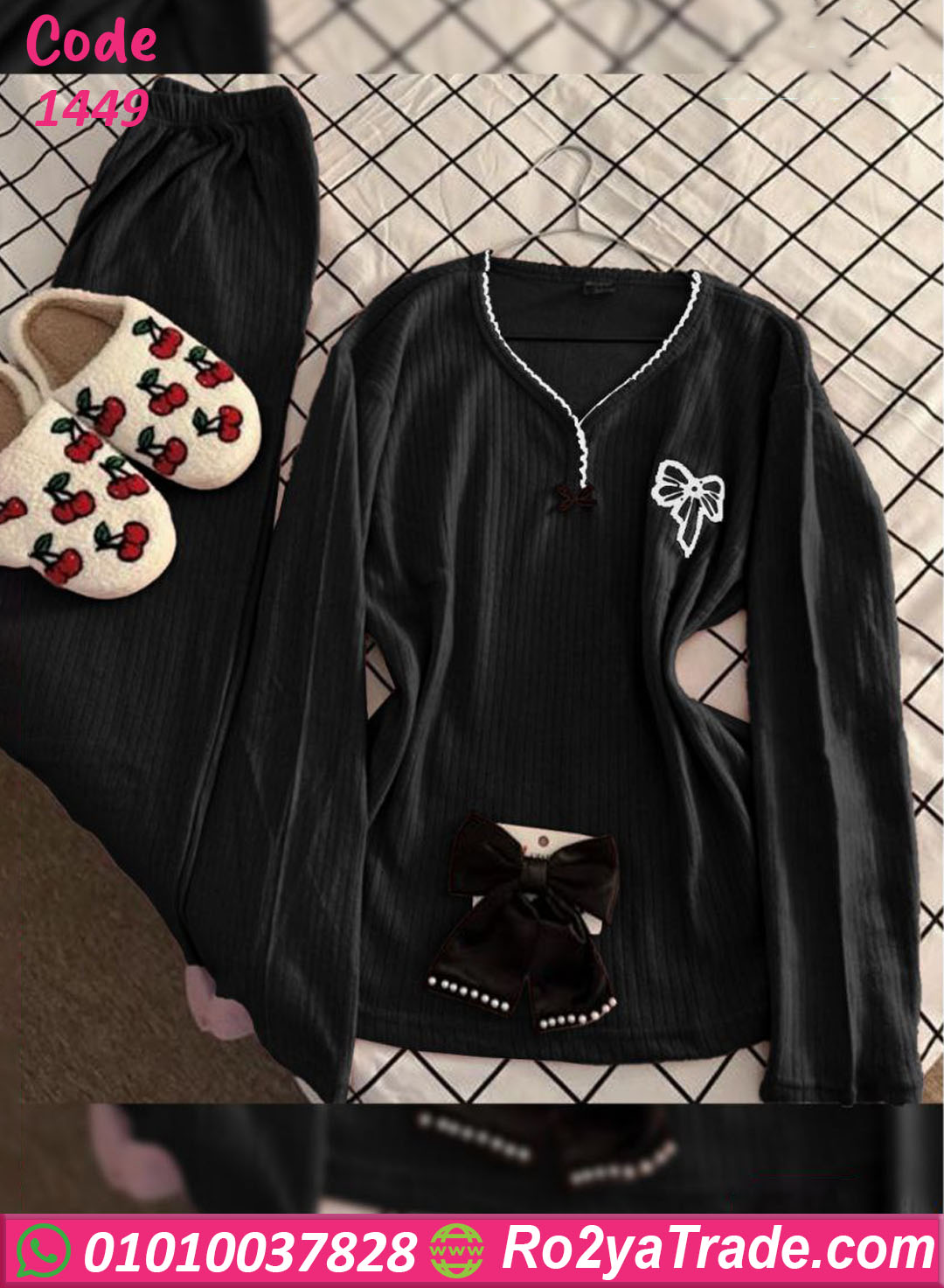 لو بتدوري على بيجامة حريمي شيك ومريحة، موديل بيجامة بفيونكة قطعتين – 1449 هيكون اختيار مثالي لإطلالة منزلية ناعمة وأنيقة.