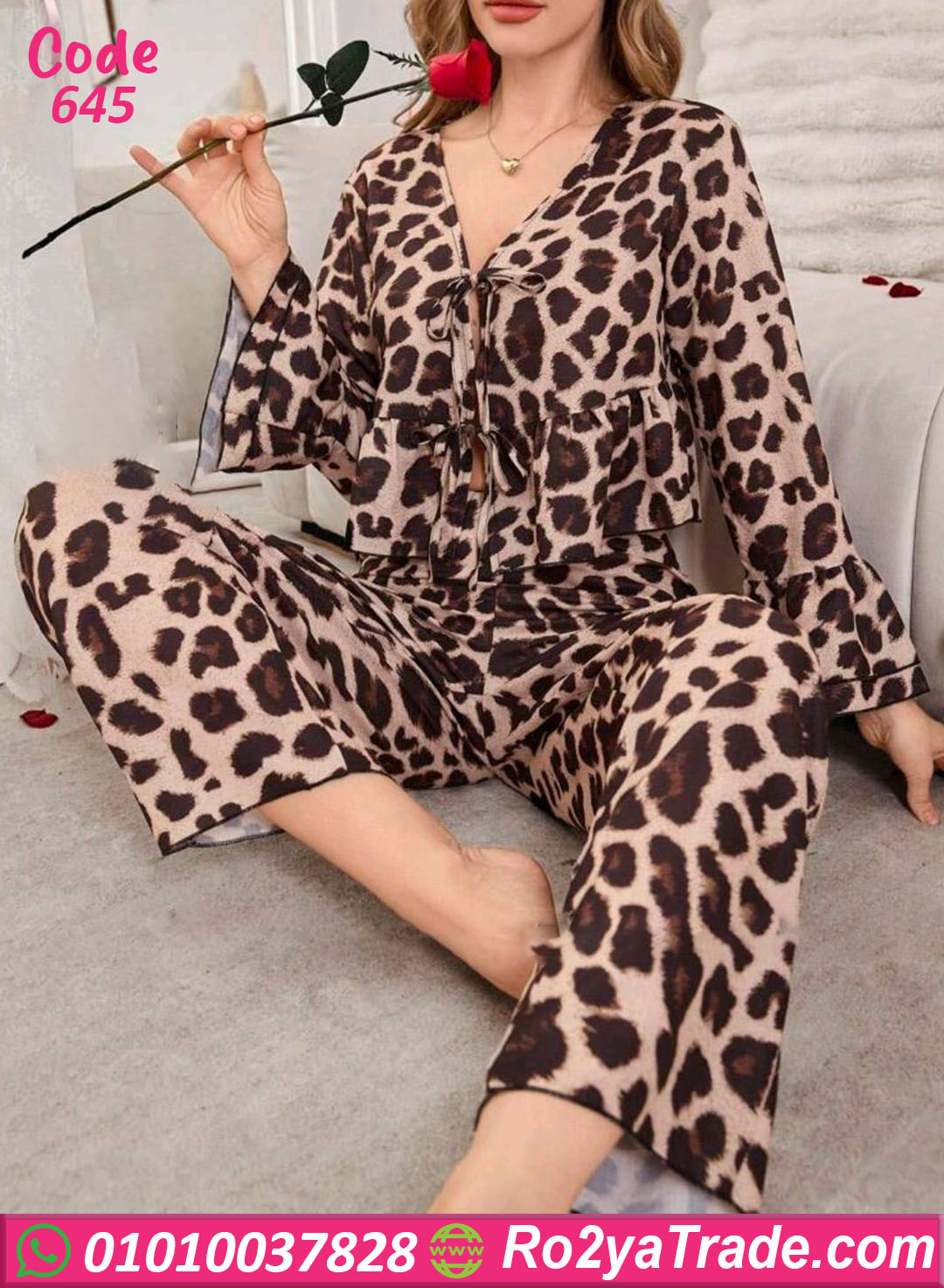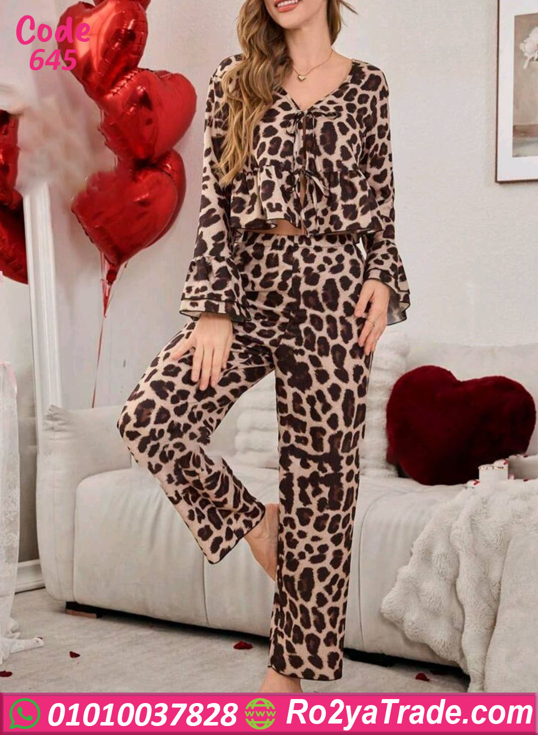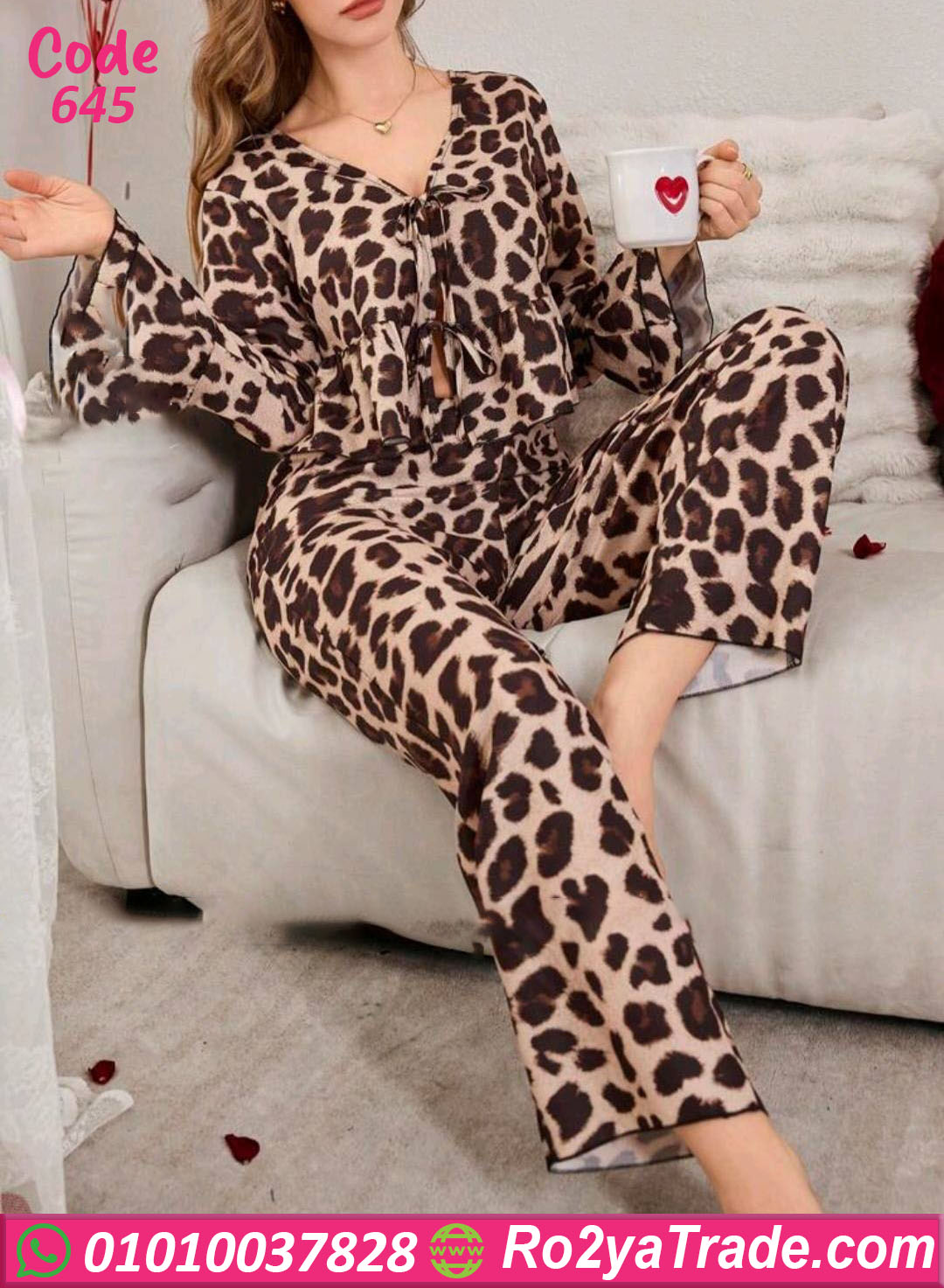 بيجامة حريمي صيفي بتصميم عصري ومريح، خامة خفيفة وناعمة بطبعة تايجر جذابة بتدي شكل شيك ومميز، مكونة من بلوزة بأكمام واسعة وبنطلون مريح يخليها اختيار مثالي للبيت والراحة اليومية.