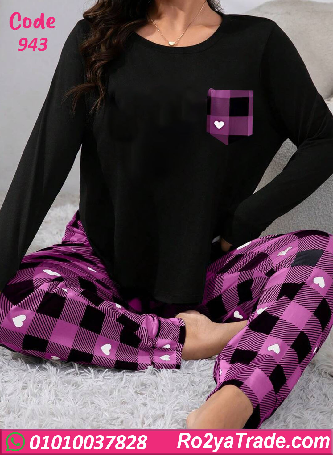 بيجامة نسائية شتوي مكوّنة من بلوزة كم طويل بقصة واسعة مريحة مع بنطلون قطن ناعم بحزام مطاطي، الخامة خفيفة ومناسبة للحركة وبتدي إحساس بالراحة طول اليوم. التصميم عملي وينفع للبيت والنوم، ومثالي لكل ست بتحب الراحة مع شكل بسيط وشيك. كود 943