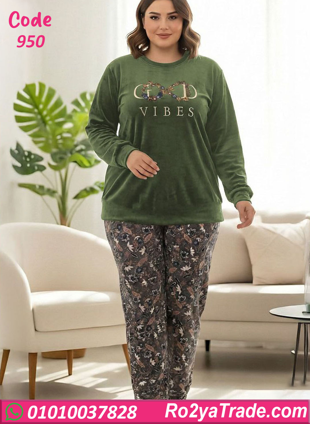 بيجامة حريمي شتوي بيج سايز قطيفة – 950