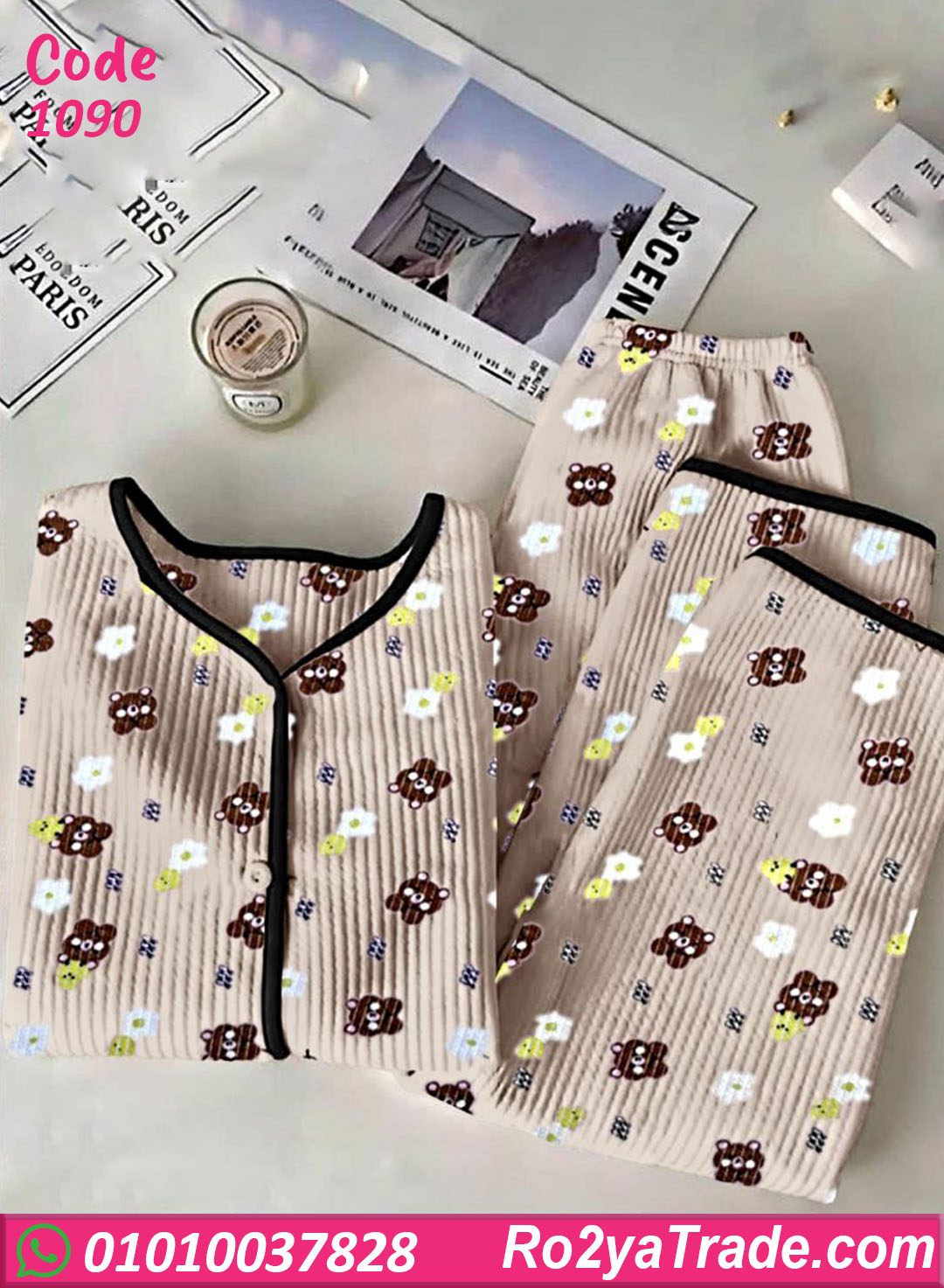 بيجامة نسائي شتوي خامتها تقيلة وناعمة بتدي إحساس عالي بالدفا، البلوزة بقصة مريحة وأزرار أمامية بتسهّل اللبس، والبنطلون بحزام مطاطي يدي راحة في الحركة. طقم عملي جدًا ومثالي للشتا، اختيار ممتاز لكل ست بتحب الراحة مع شكل لطيف وشيك. كود 1090