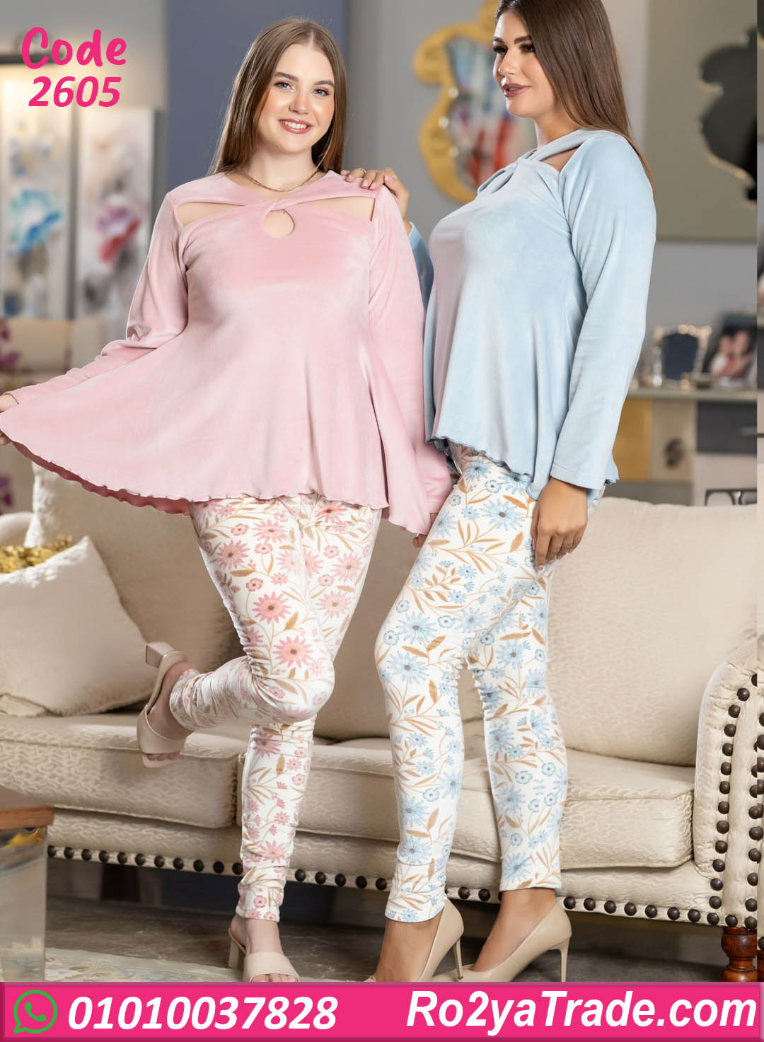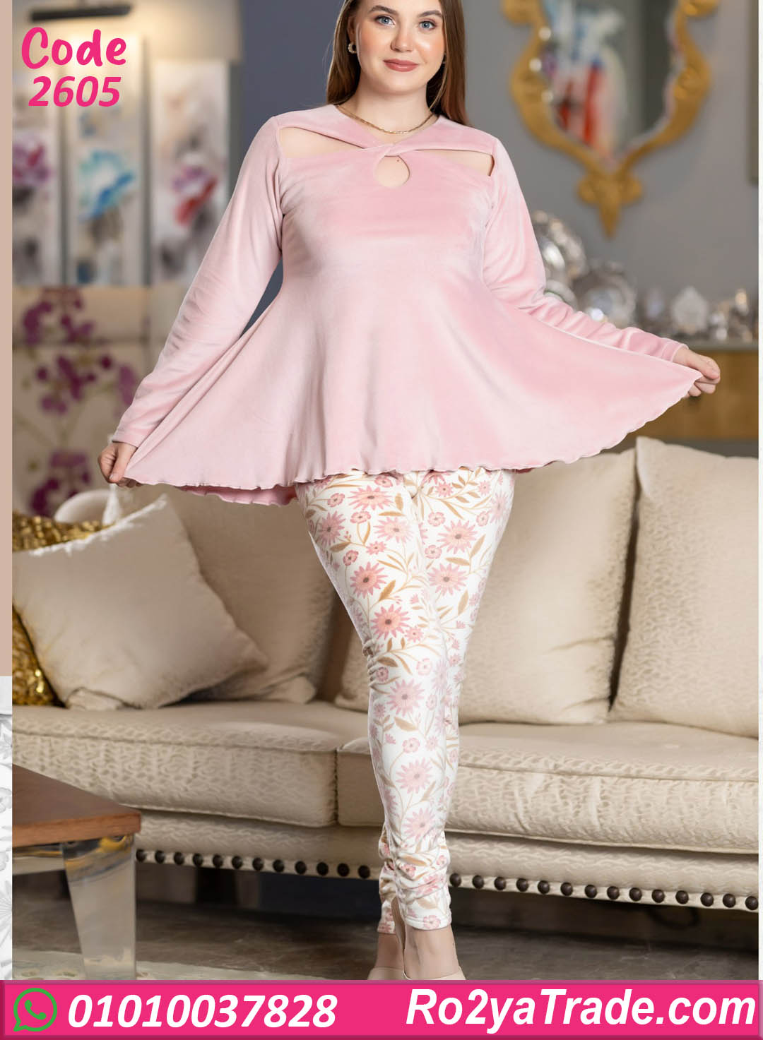 بيجامة نسائي شتوي مكونة من قطعتين، تيشيرت واسع بتصميم أنيق مع فتحة رقبة بسيطة تضيف لمسة رقيقة، وبنطلون بنقشة هادية وعصرية. الخامة ناعمة على الجلد وبتدي إحساس بالدفا والراحة طول اليوم. التصميم عملي وينفع للبس في البيت أو استقبال بسيط، وكمان مناسب للستات اللي بتحب الأناقة حتى في اللبس البيتي. قطعة أساسية في دولاب الشتاء لكل ست عايزة الراحة مع الشكل الحلو. كود 2605