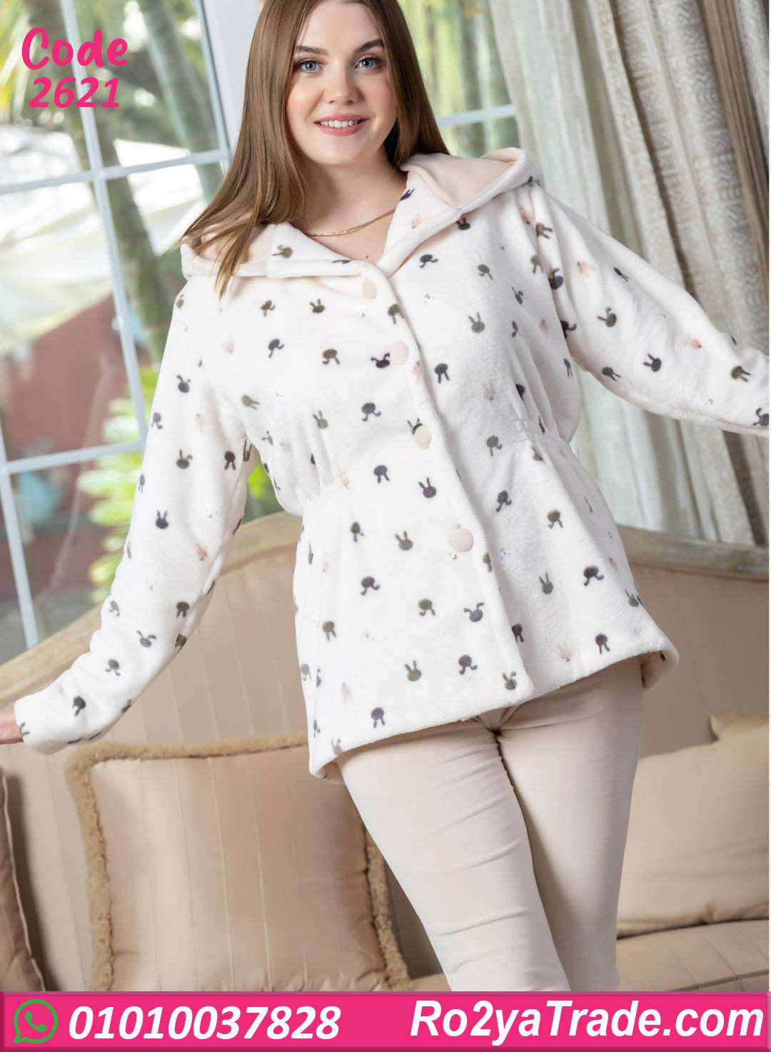 بيجامة نسائي شتوي مكونة من قطعتين، جاكيت شتوي بكابيشو وأزرار أمامية بطبعات لطيفة تضيف شكل مميز، مع بنطلون سادة مريح وسهل الحركة. الخامة ناعمة على الجلد ودافية جدًا، مناسبة لأجواء الشتاء الباردة. التصميم عملي وينفع للبس اليومي في البيت أو استقبال بسيط، وكمان اختيار ممتاز للي بتحب اللبس البيتي المريح وفي نفس الوقت شكله شيك. قطعة أساسية في دولاب الشتاء. كود 2621