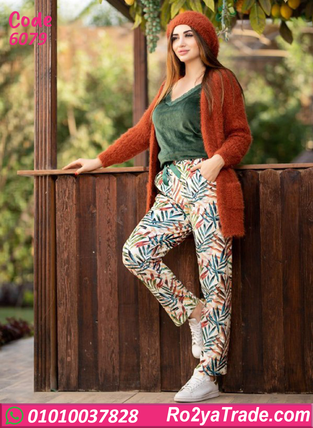 بيجامة حريمي شتوي كود 6079 اختيار مثالي لكل ست بتحب الشياكة والراحة معًا. الطقم مكوّن من توب قطيفة بحمالة بلمسة ناعمة على الجسم، ومعاه كارديجان قطيفة دافي بيدّي شكل أنيق ومناسب للجو البارد، وبنطلون مريح بنقشة أوراق مميزة بتكمّل شكل الطقم. الخامة قطيفة ناعمة ودافية، بتوفّر إحساس عالي بالراحة والدفا خصوصًا في أيام الشتاء. التصميم عملي وسهل اللبس، ومناسب للاستخدام اليومي في البيت أو أوقات الراحة، وبيجمع بين الدفا والشكل العصري.