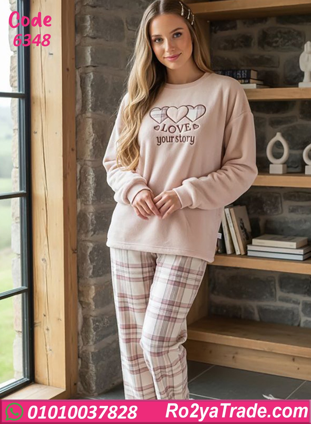 بيجامة حريمي شتوي كود 6348 اختيار مثالي لكل ست بتدور على الراحة مع شكل أنيق وبسيط. البيجامة مكونة من قطعتين،