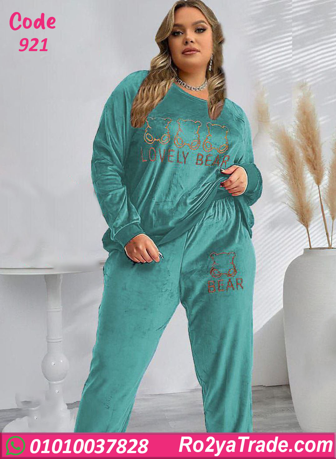 بيجامة حريمي شتوي كود 921 اختيار عملي لكل ست بتدور على الدفا والراحة مع شكل أنيق. الخامة القطيفة ناعمة على الجسم وبتحافظ على الإحساس بالدفا لفترات طويلة من غير تقيل أو تضييق. التصميم قطعتين بقصة مريحة تساعد على حرية الحركة، مع طباعة دب شيك بتدي شكل جذاب وعصري. الموديل مناسب للاستخدام اليومي داخل البيت وبيجمع بين الراحة والشياكة في نفس الوقت.