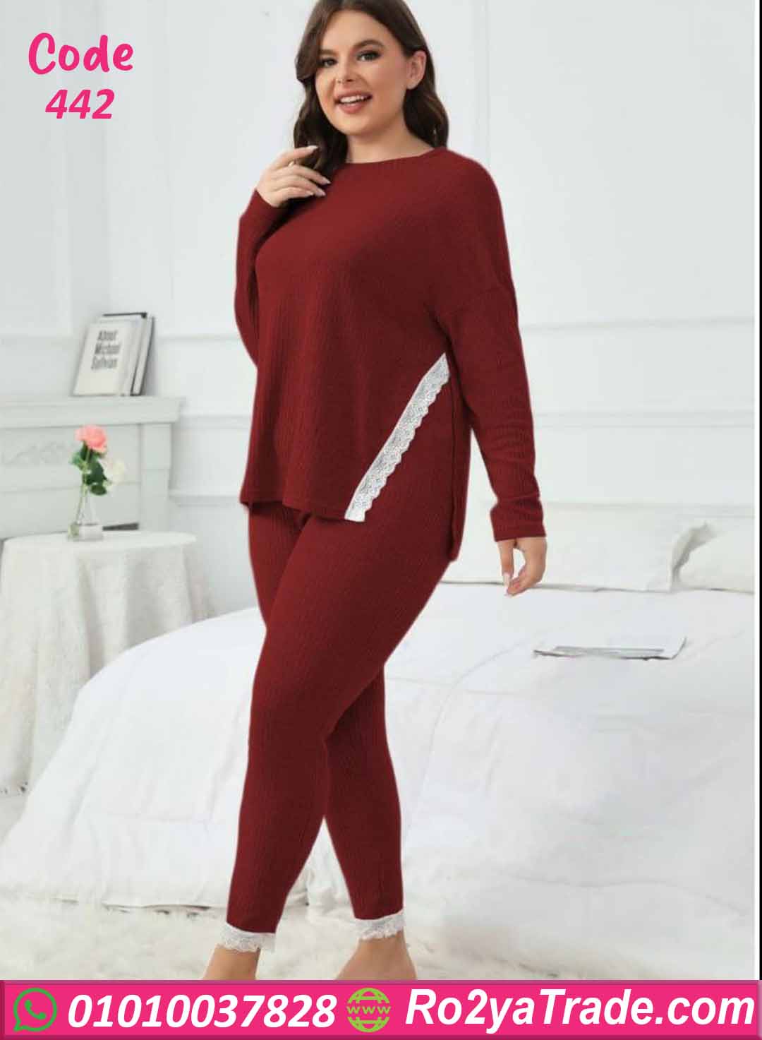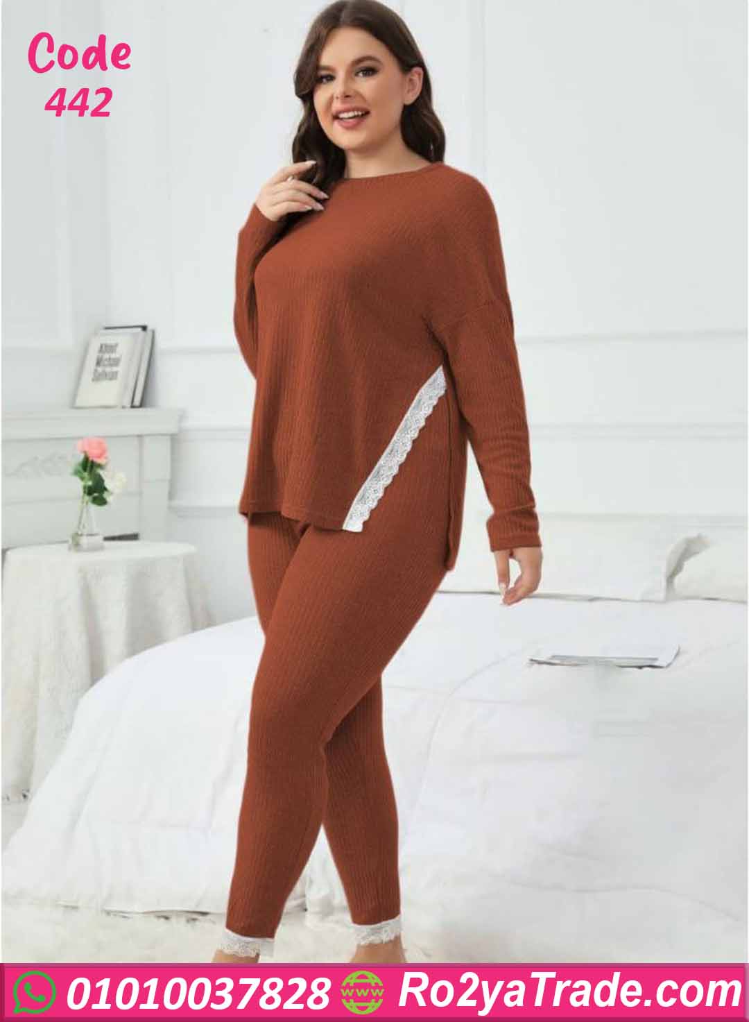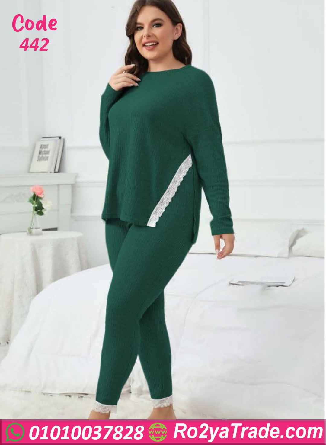 بيجامة كود 442 من ماركة Big Ladies بتصميم عصري مناسب للمقاسات الكبيرة، حيث تجمع بين الراحة والأناقة بفضل الخامة المضلعة الناعمة والتفاصيل الأنثوية الرقيقة.