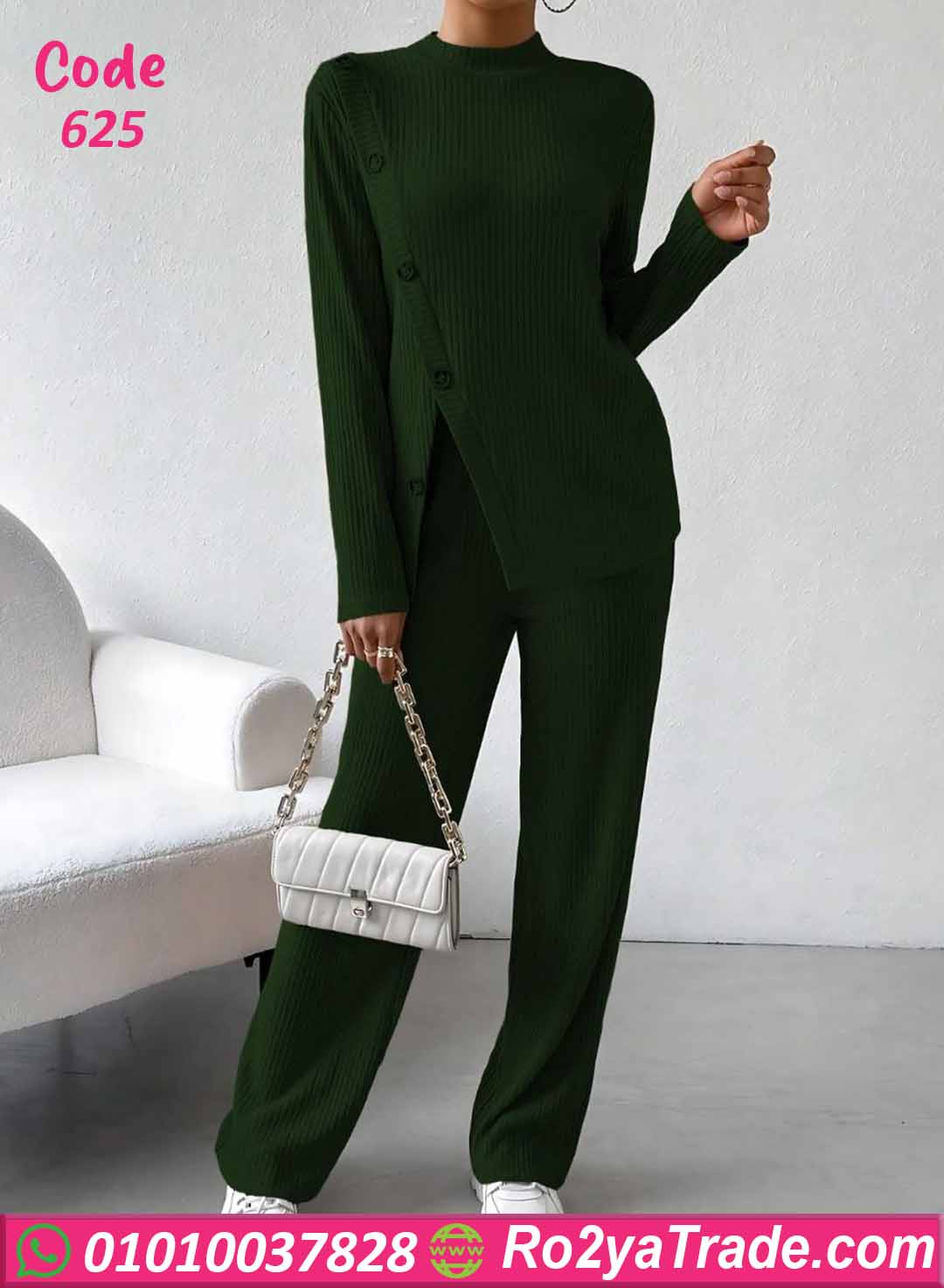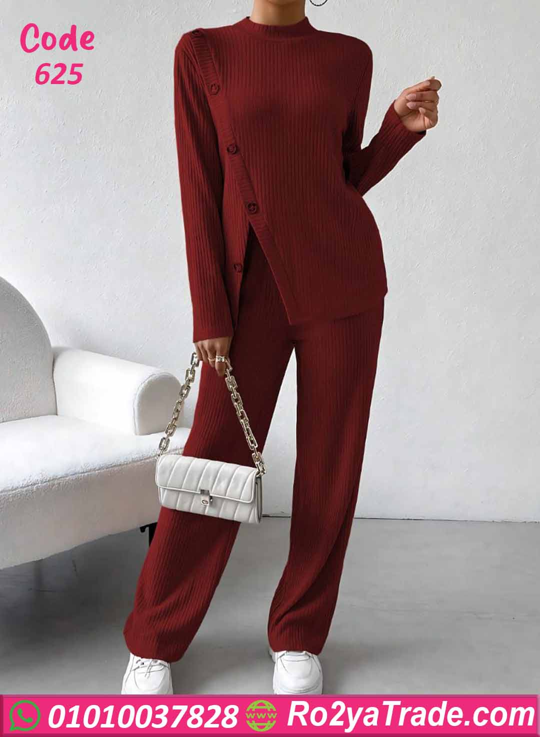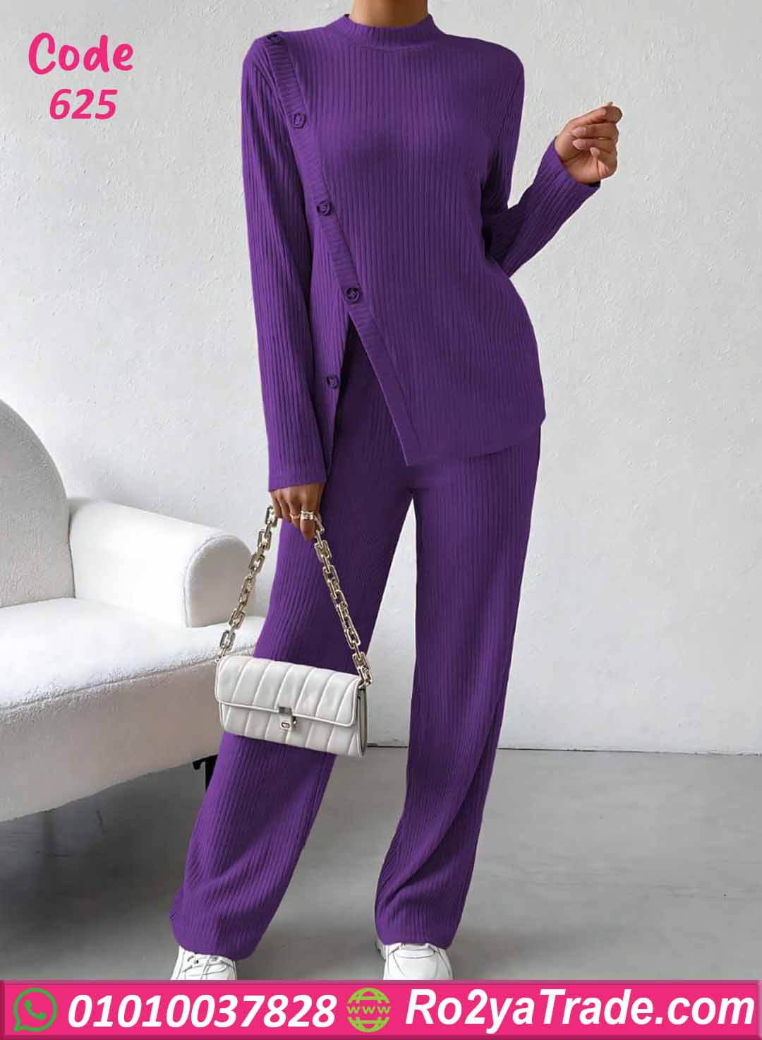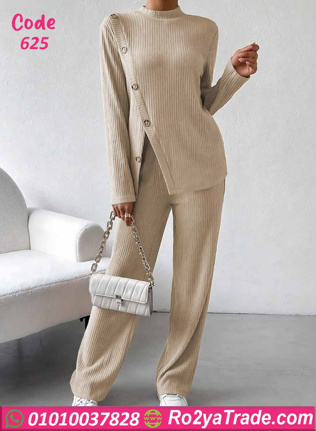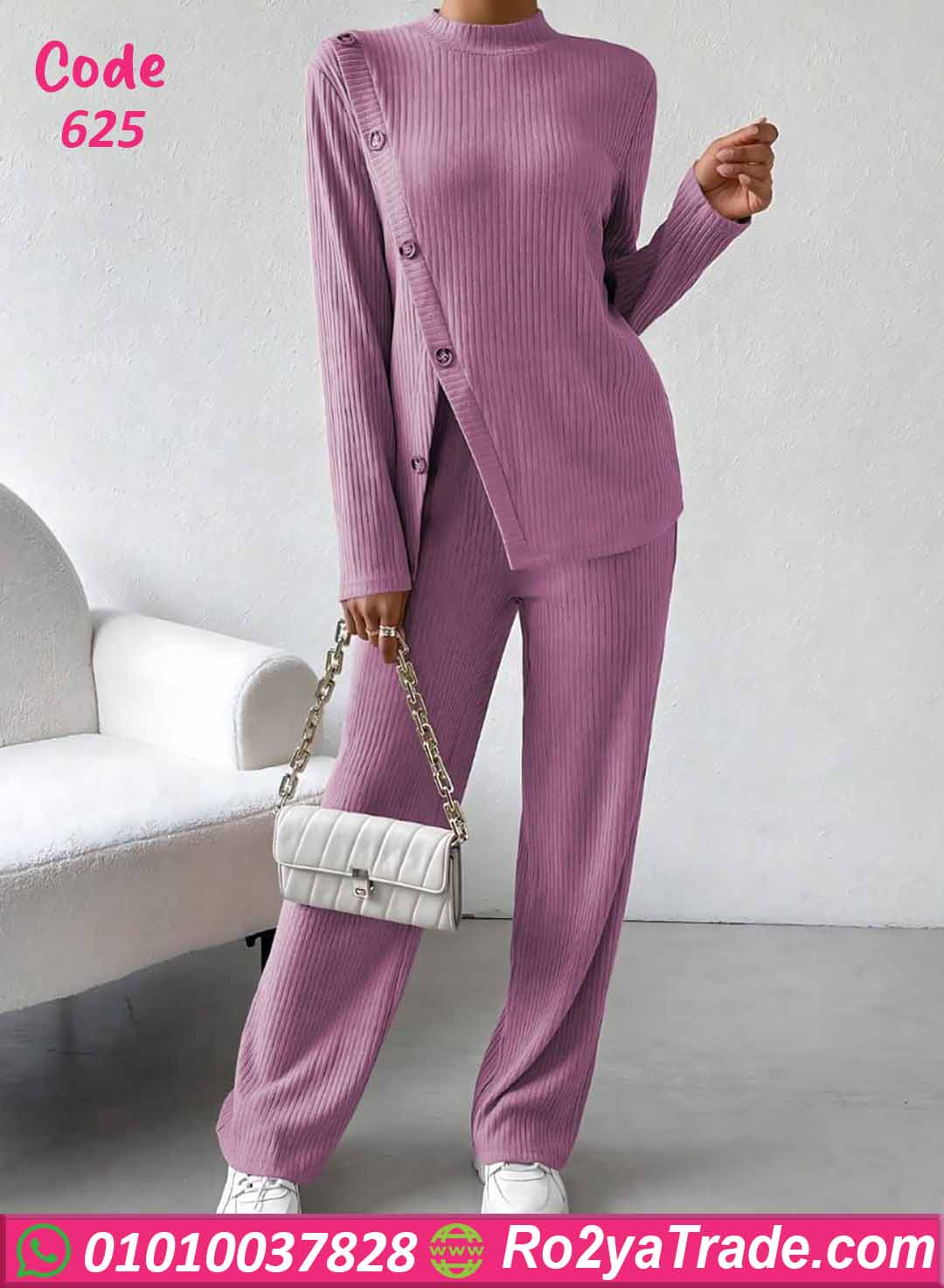 بيجامة كود 625 من ماركة Laroj بتصميم مميز وعصري يناسب الاستخدام اليومي داخل المنزل، حيث تجمع بين الراحة والأناقة بفضل القماش المضلع المرن والتفاصيل الجانبية بالأزرار التي تضيف لمسة عصرية جذابة.