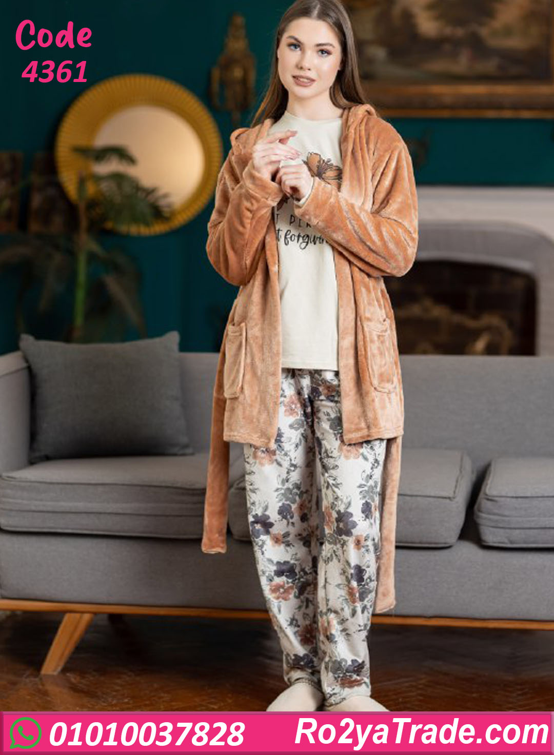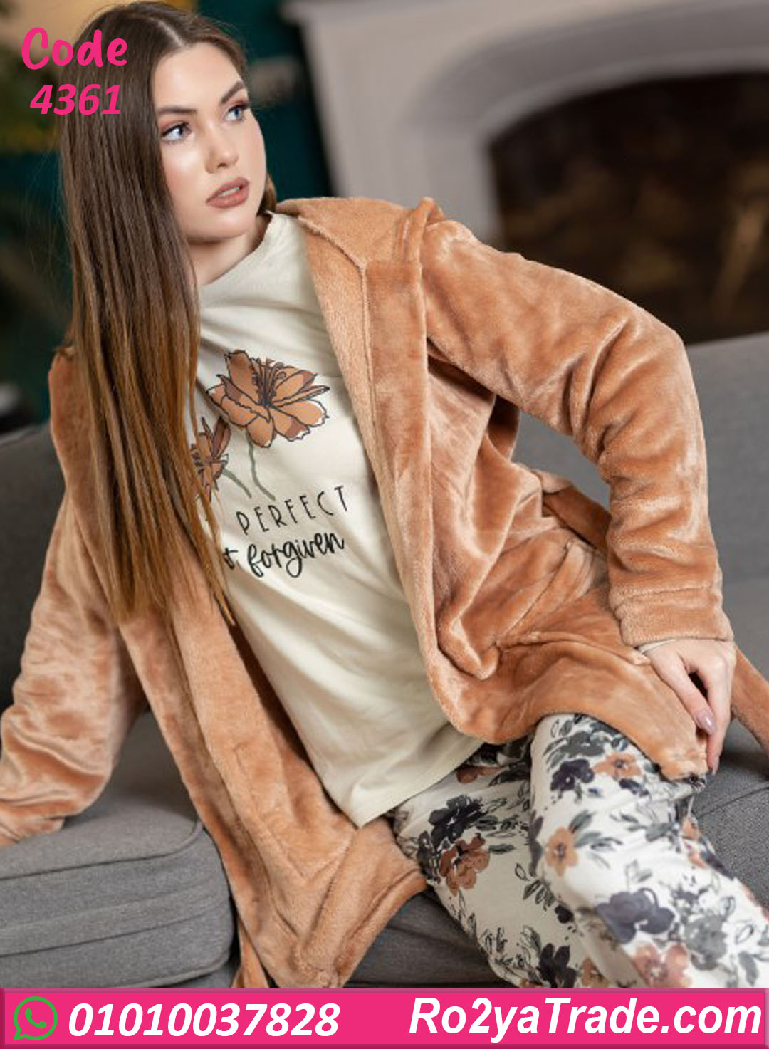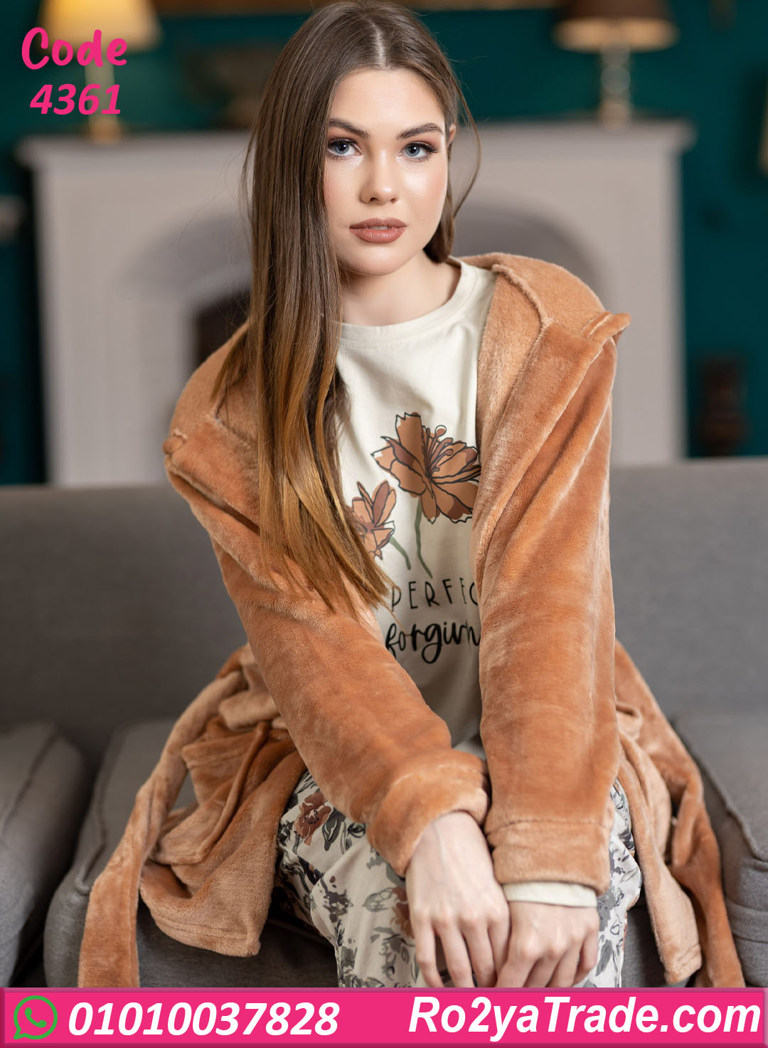 بيجامة حريمي شتوي مع روب كود 4361 اختيار مثالي لكل ست بتدور على الدفا والراحة مع شكل أنيق في نفس الوقت