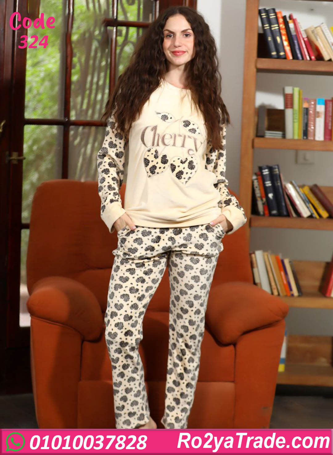 بيجامة نسائي شتوي مكوّنة من سويت شيرت بكم طويل وخامة ناعمة برسمة Cherry مميزة، مع بنطلون شتوي مريح بنقشة متناسقة. الخامة لطيفة على الجلد وبتوفر إحساس عالي بالراحة والدفا، والطقم مناسب اللبس اليومي في البيت أو القعدة. قطعة أساسية لأي ست بتحب الراحة مع شكل شيك. كود 324
