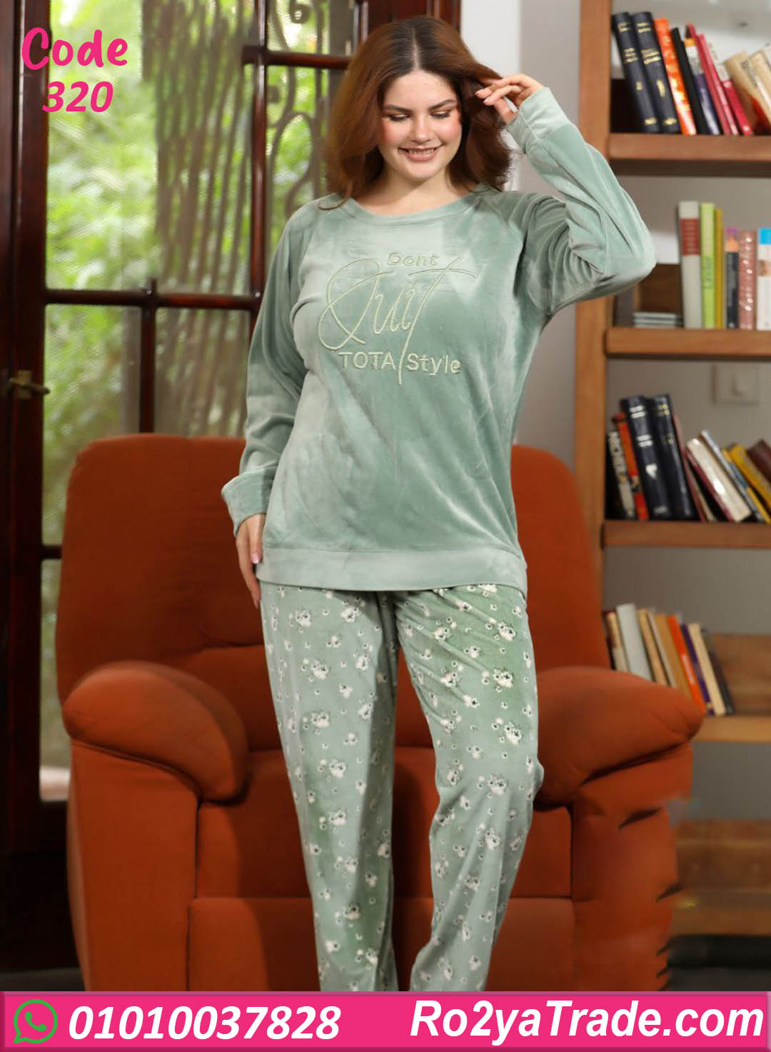 الخامة لطيفة على الجلد وبتوفر إحساس عالي بالدفا والراحة، والطقم مناسب اللبس اليومي في البيت أو القعدة. اختيار عملي لأي ست بتحب البساطة مع الراحة. كود 320