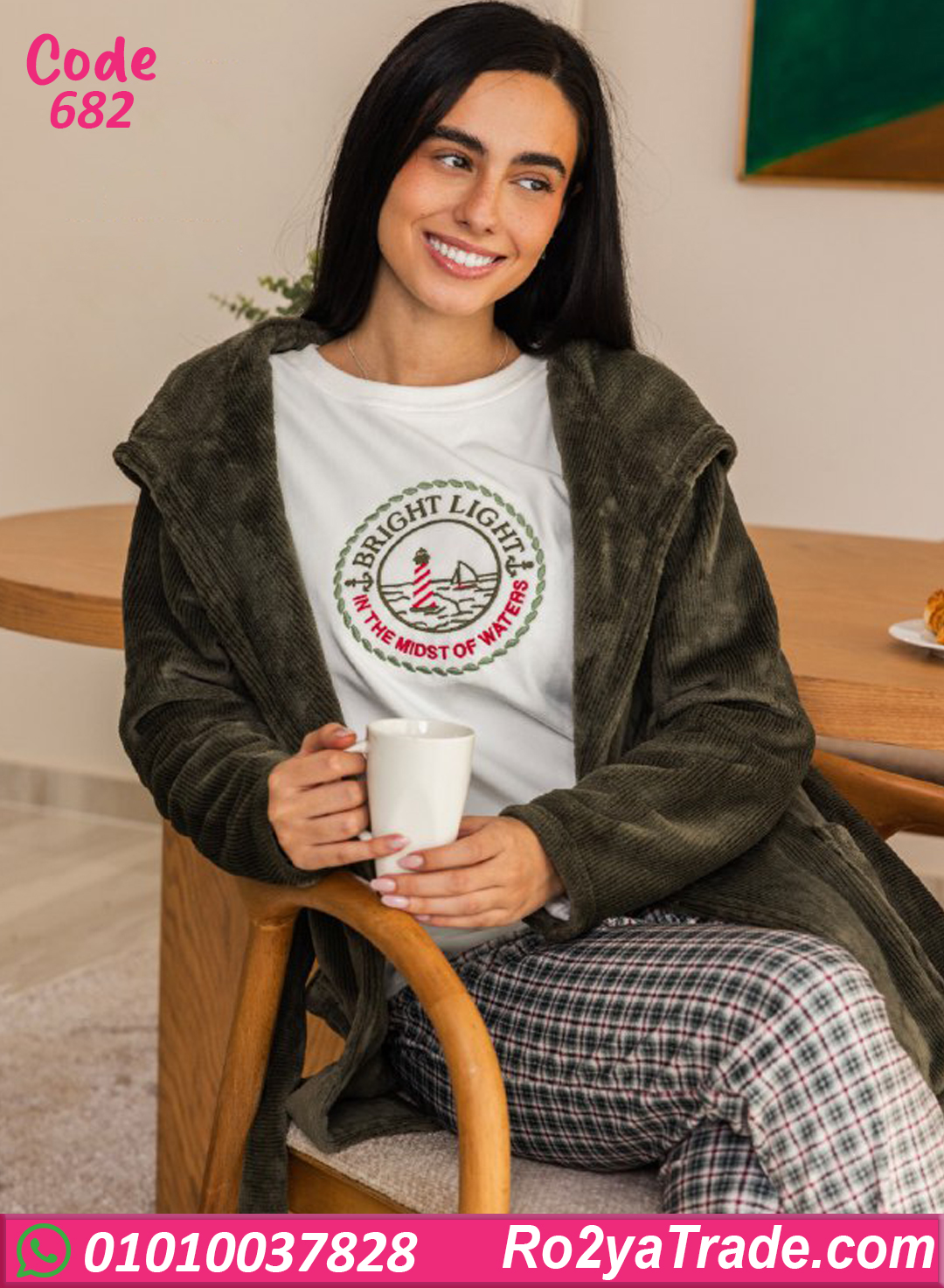 بيجامة حريمي شتوي 3 قطع بالروب – كود 682