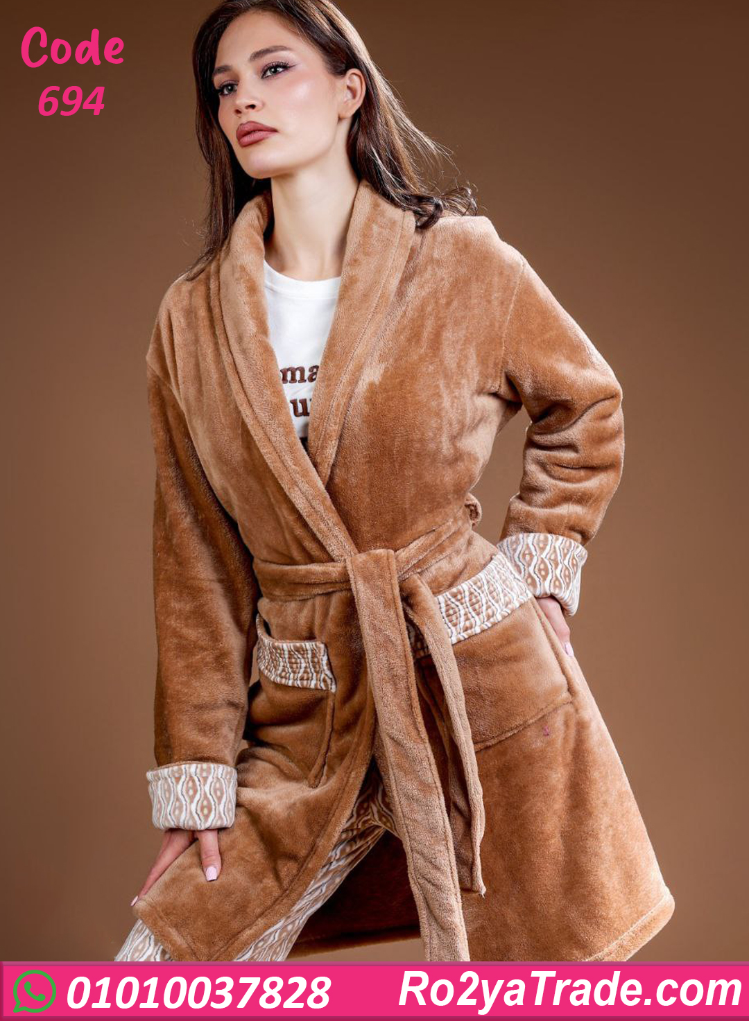بيجامة حريمي شتوي 3 قطع بالروب – 694