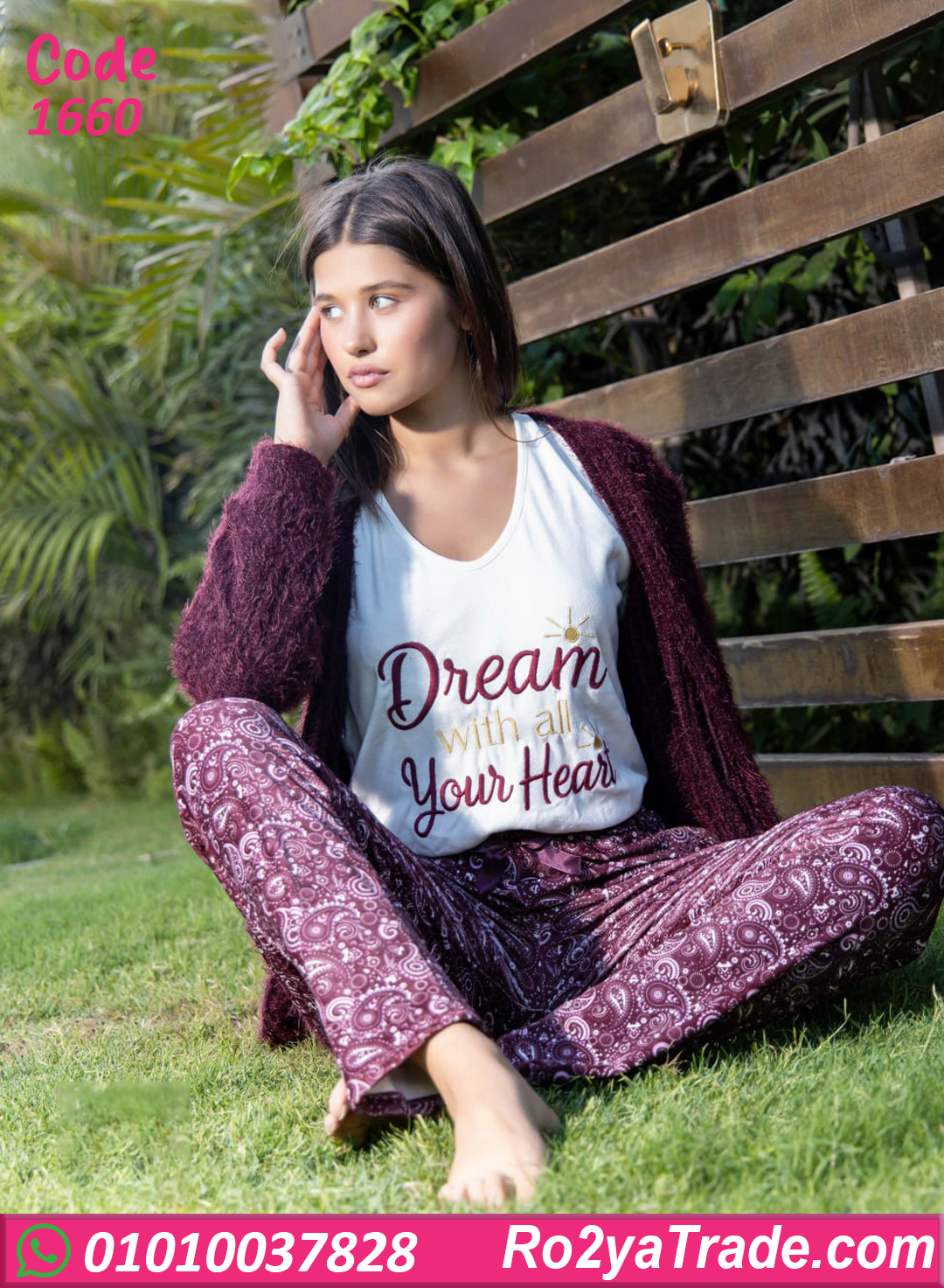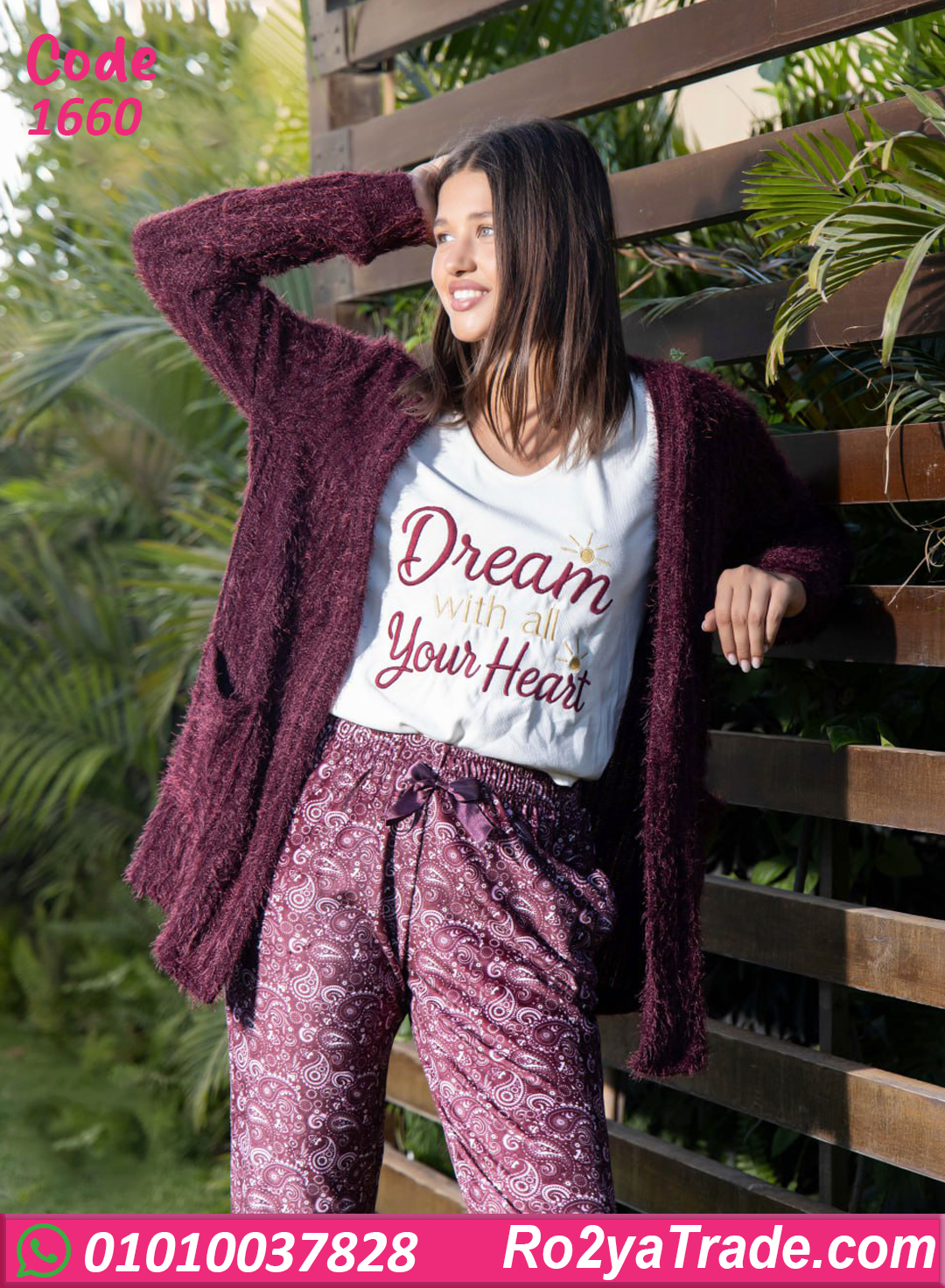 بيجامة حريمي شتوي 3 قطع – كود 1660