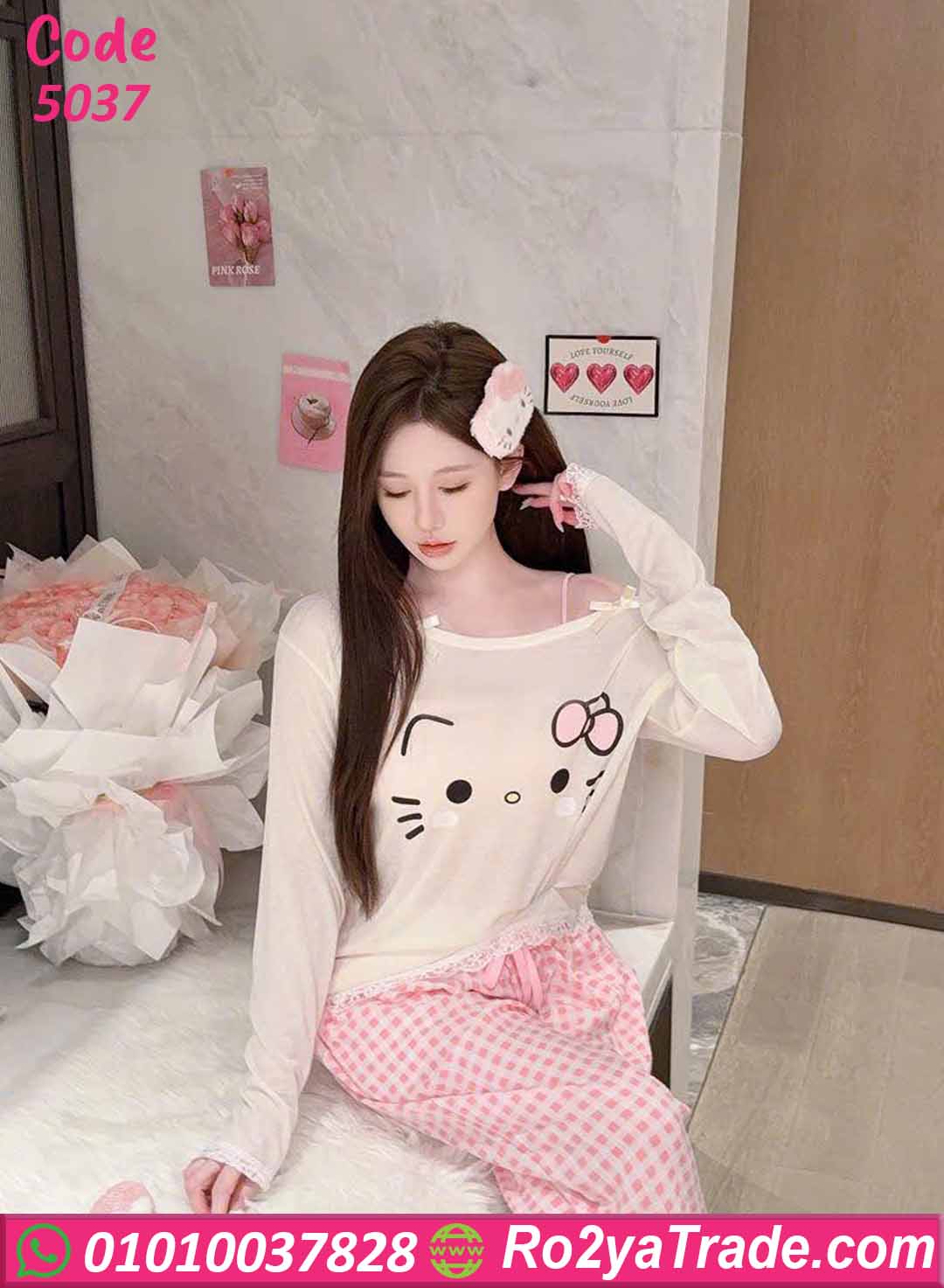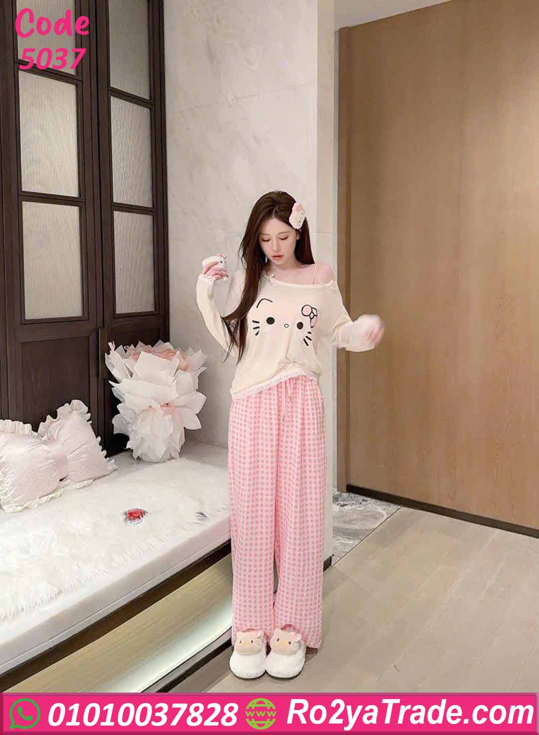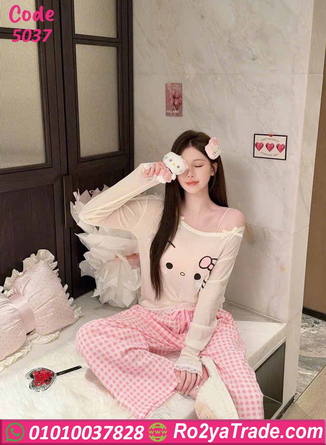 بيجامة حريمي كود 5037 من ماركة Sofia Fashion بتصميم شبابي كيوت يناسب البنات والسيدات الباحثات عن الراحة والأناقة في ملابس المنزل.