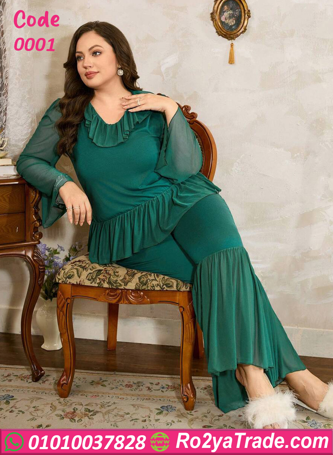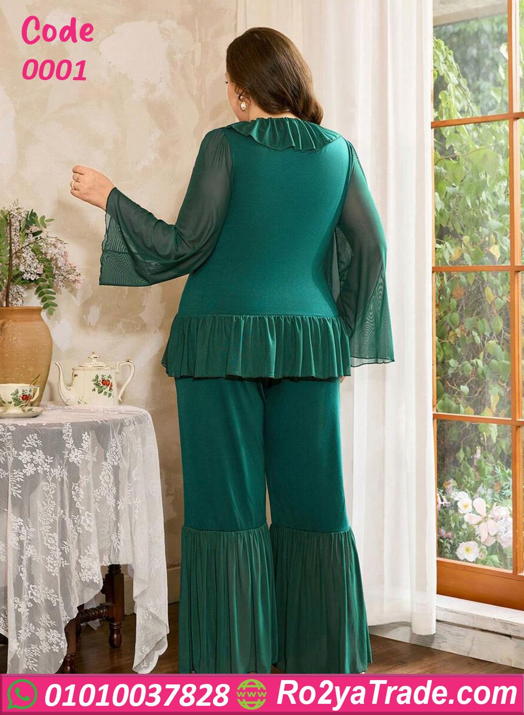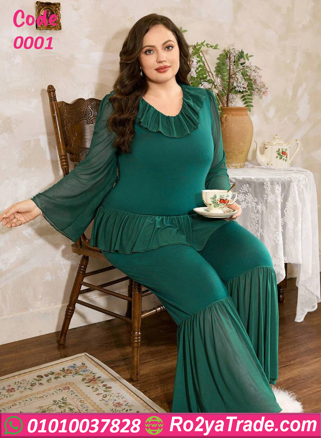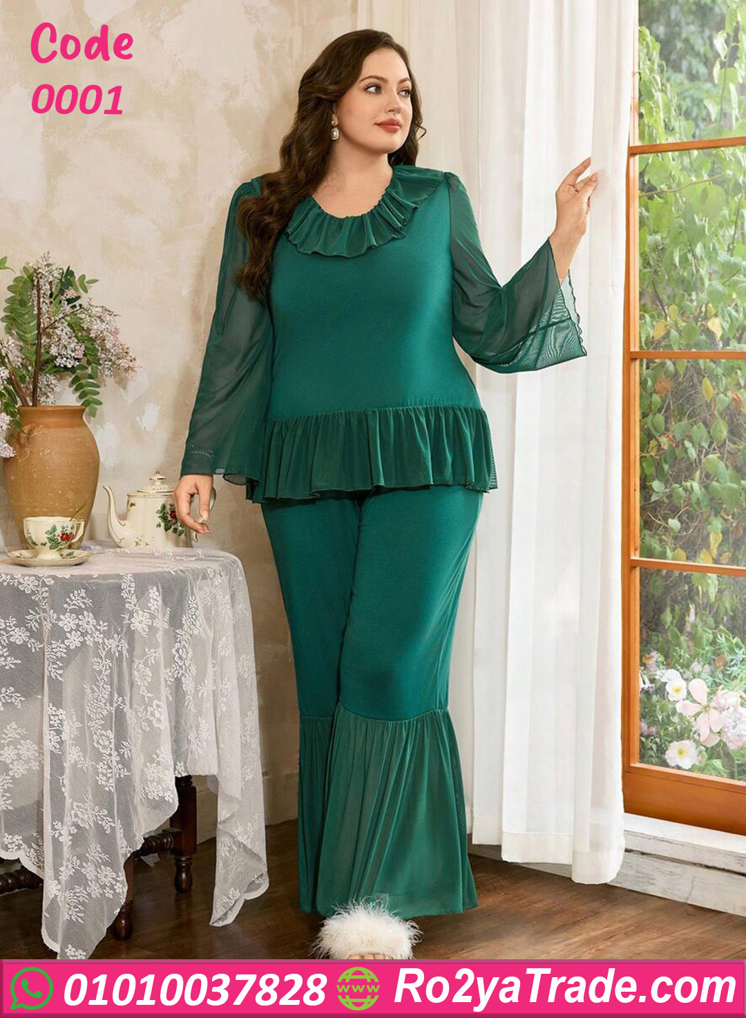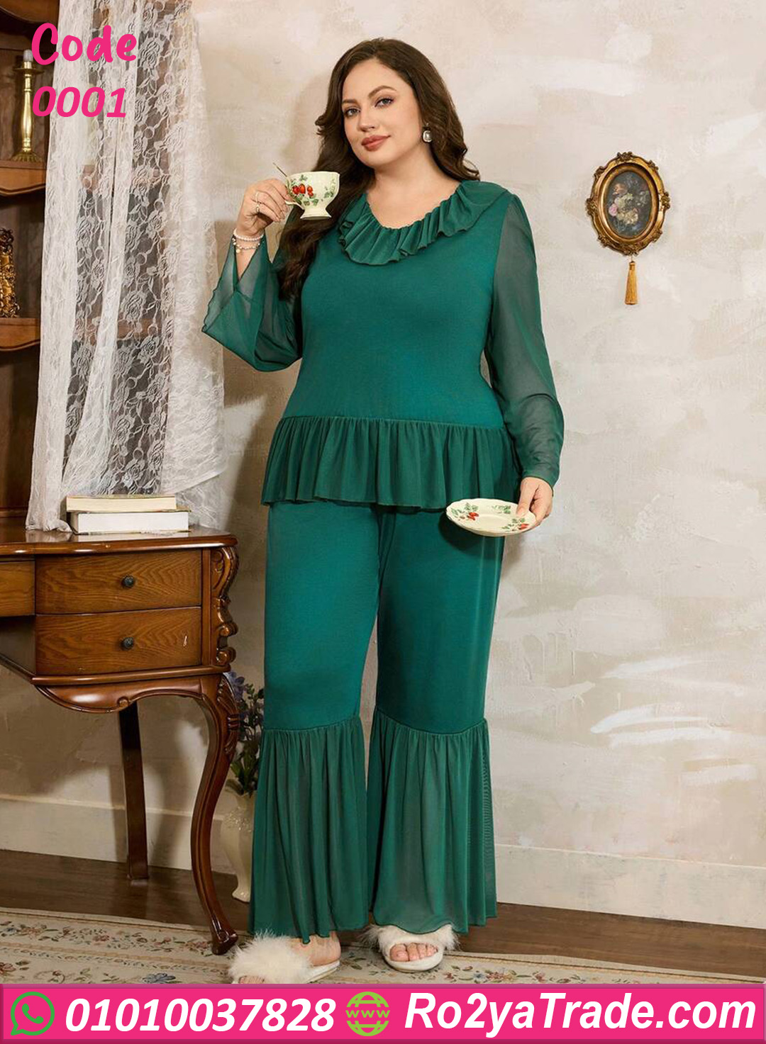 بيجامة صيفي حريمي مكوّنة من بلوزة بكم شيفون واسع وبنطلون بقصة مريحة، خامتها خفيفة وناعمة على الجلد وبتسمح بالتهوية، مثالية لأيام الصيف.