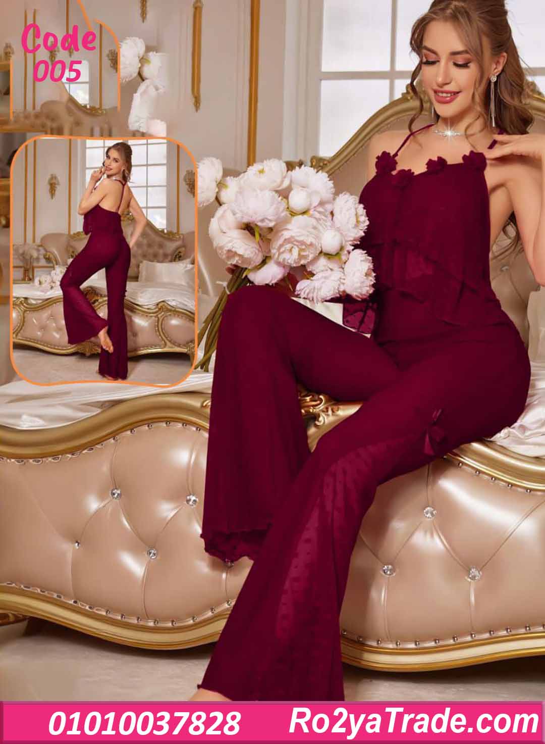 مكوّنة من توب بحمالات رفيعة وبنطلون واسع بقصة رجل واسعة (شارلستون) علشان يديكي لوك مميز ومريح في نفس الوقت.