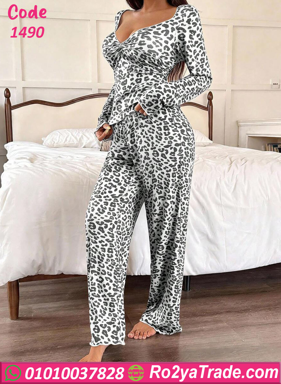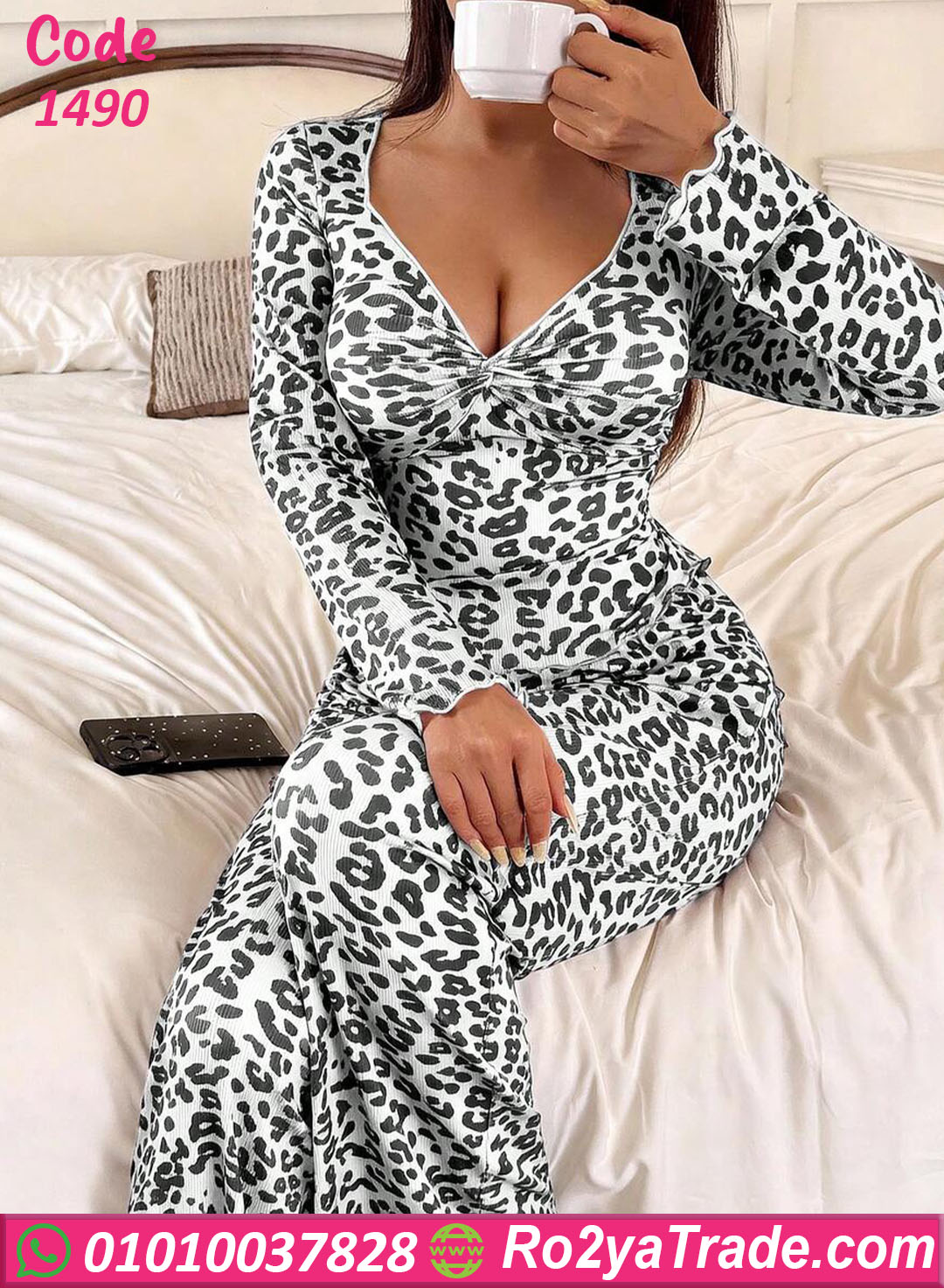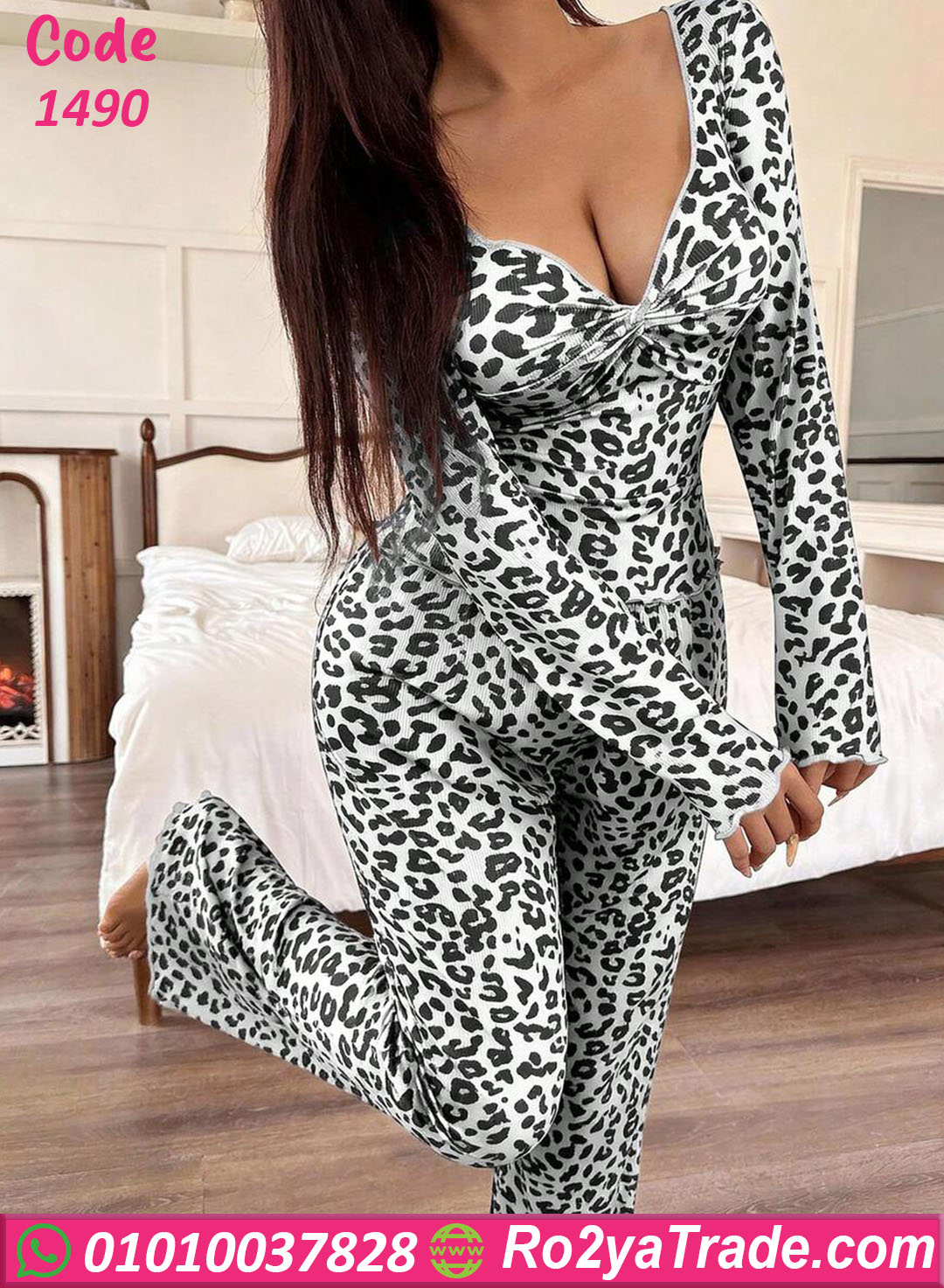 لو بتدوري على بيجامة حريمي صيفي ستايل جريء ومميز، موديل بيجامة ليوبارد – كود 1490 هيكون اختيار مثالي ليكي.