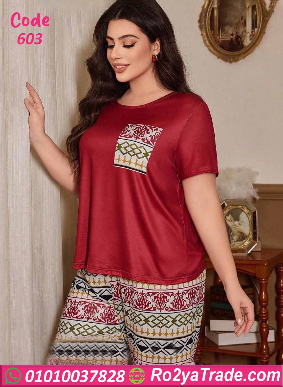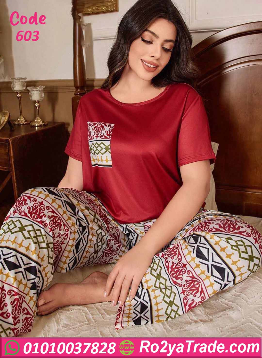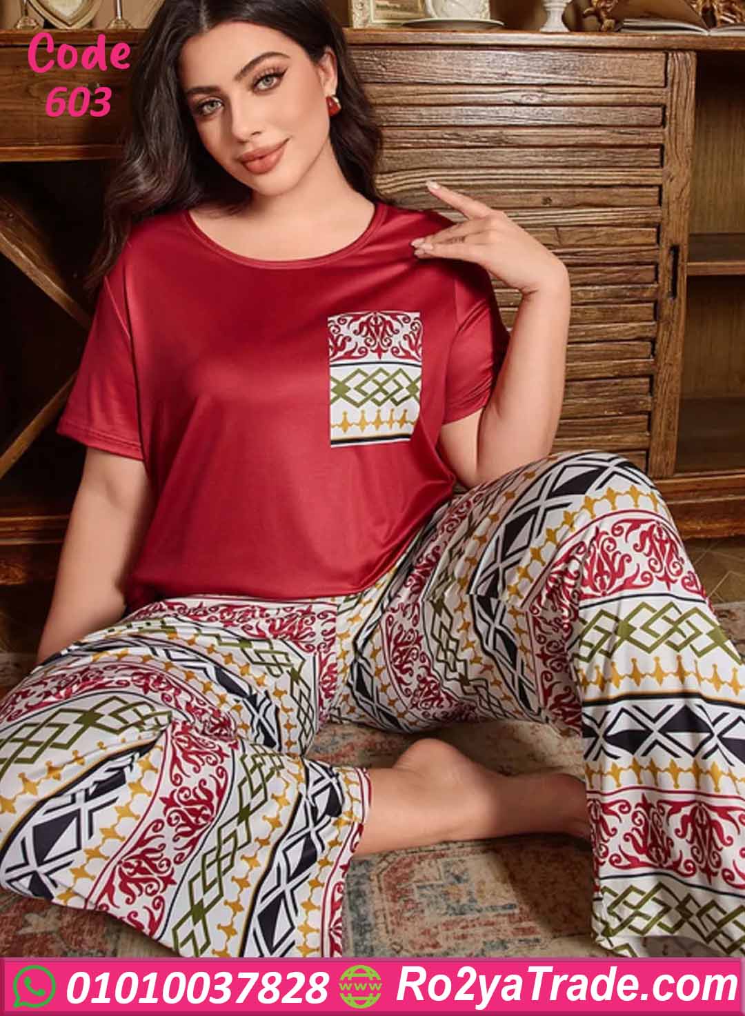 بيجامة حريمي صيفي نقشة تراثية – كود 603