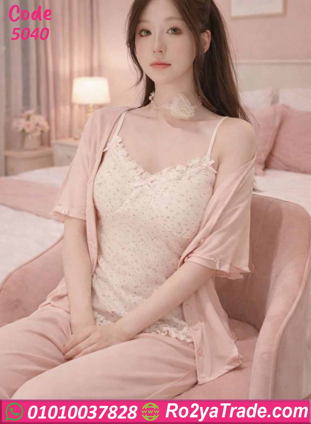 بيجامة حريمي كود 5040 من ماركة Sofia Fashion بتصميم أنيق وناعم يناسب السيدات الباحثات عن الراحة مع لمسة أنثوية راقية.