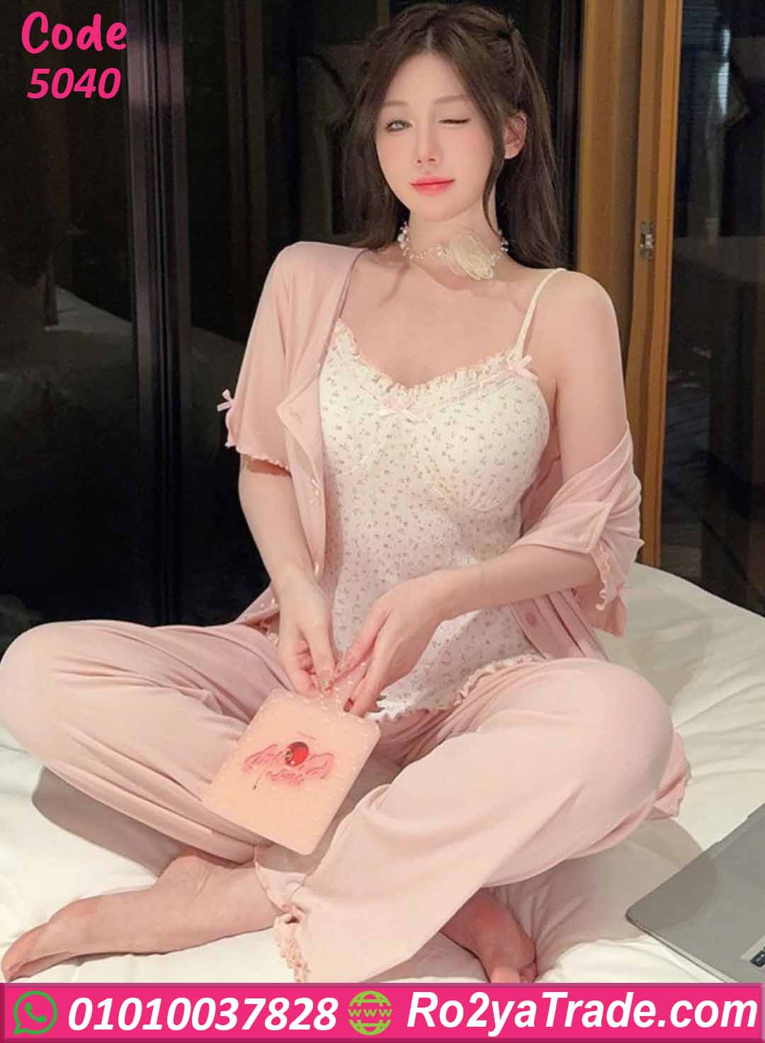 بيجامة حريمي صيفي 3 قطع دانتيل أنيق – كود 5040
