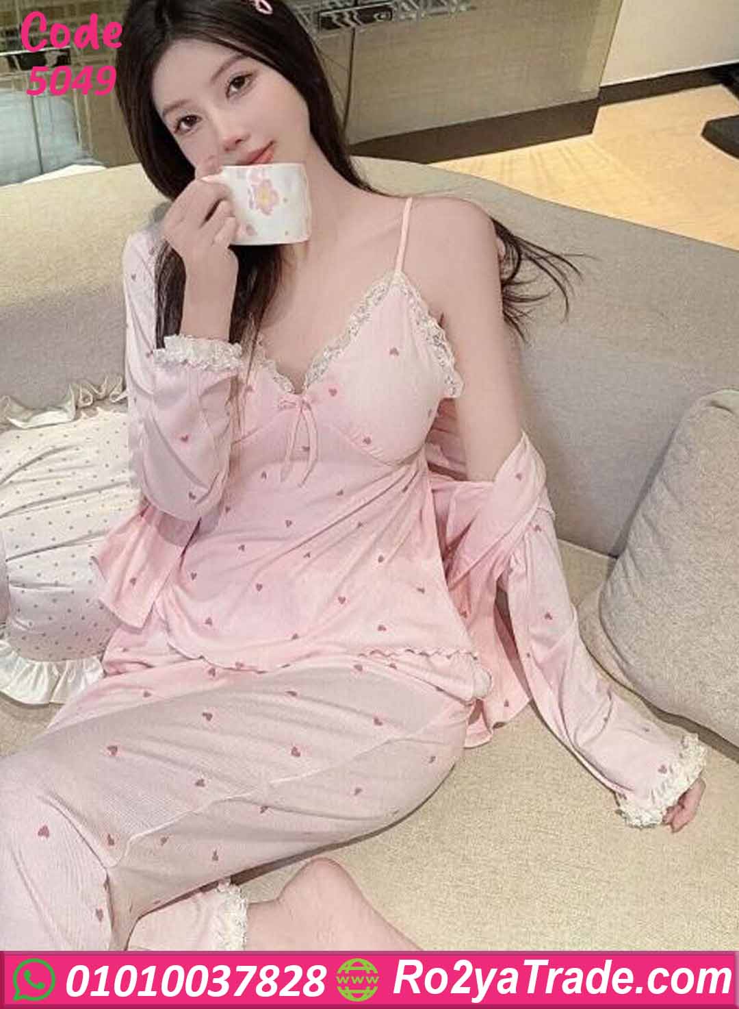بيجامة حريمي كود 5049 من ماركة Sofia Fashion بتصميم أنثوي ناعم يمنحك مظهرًا أنيقًا ومريحًا في نفس الوقت.