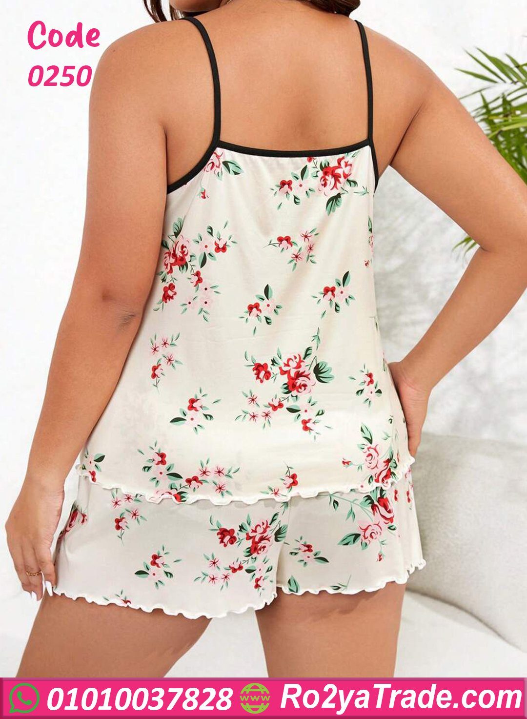 بيجامة حريمي ناعمة ومريحة بخامة خفيفة بطبعة ورد، ستايل صيفي شيك وأنثوي يخليكي مرتاحة وجميلة في البيت 🌸