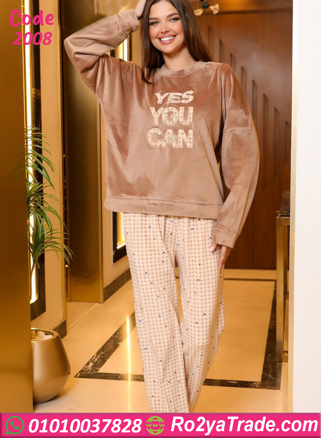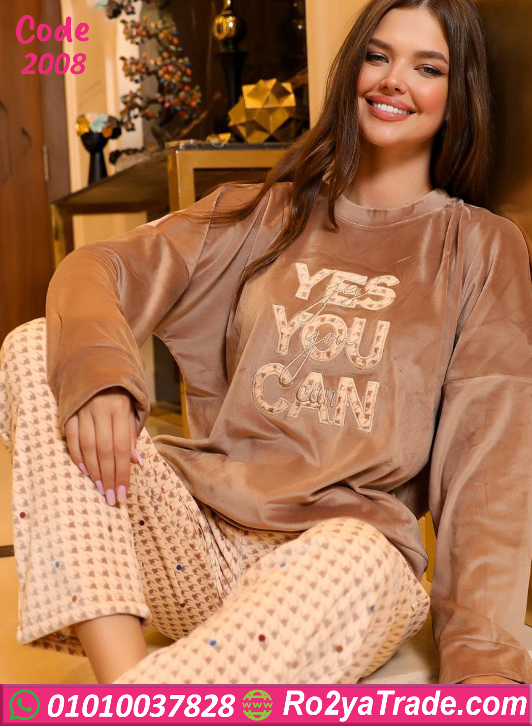 بيجامة حريمي شتوي بخامة فرو سوفت مريحة على الجسم جدًا، البلوزة مطبوعة بكلمة “YES YOU CAN” بتدي لمسة أنوثة وثقة، والبنطلون واسع بخامة دافية ومريحة للحركة.