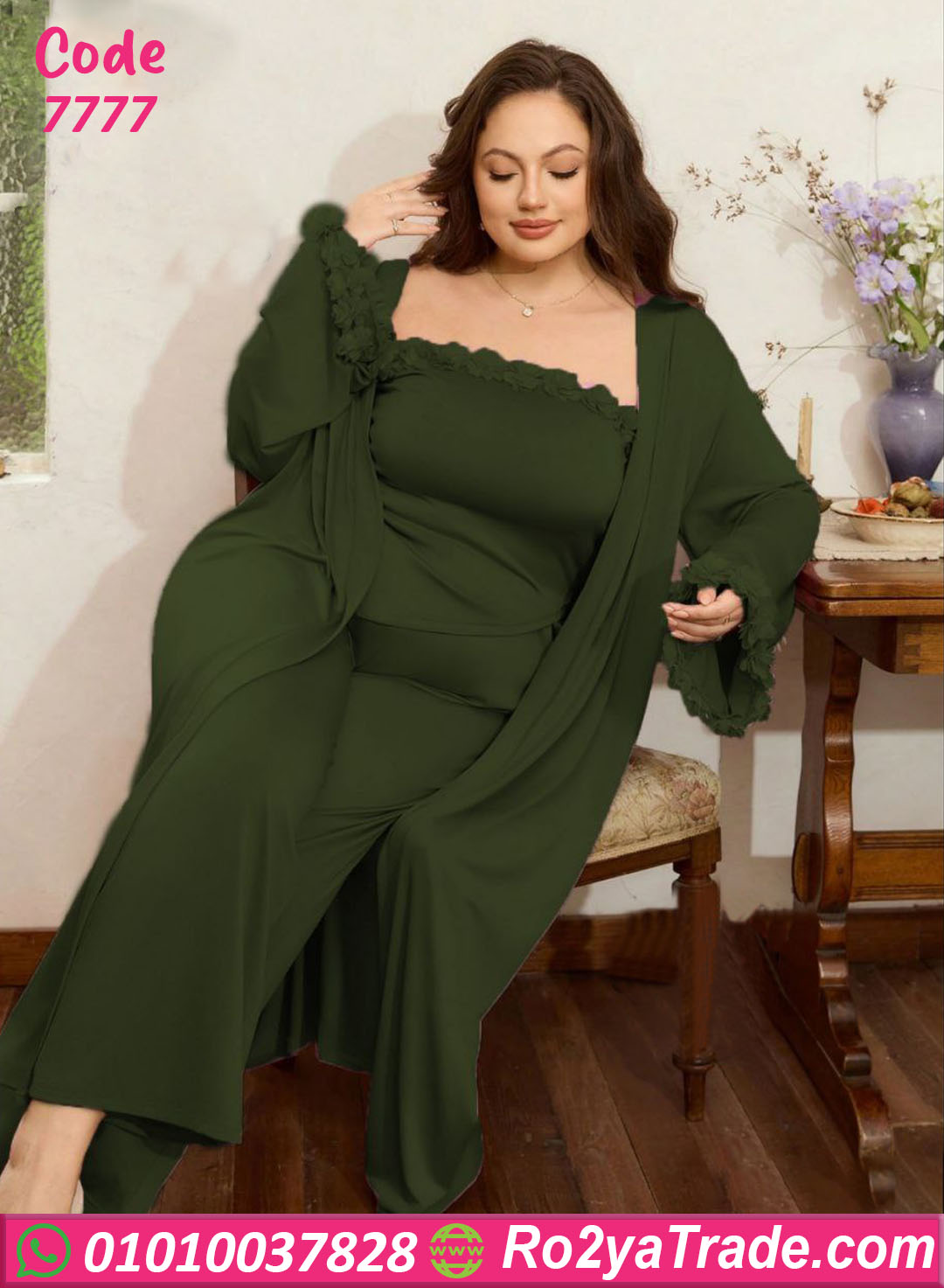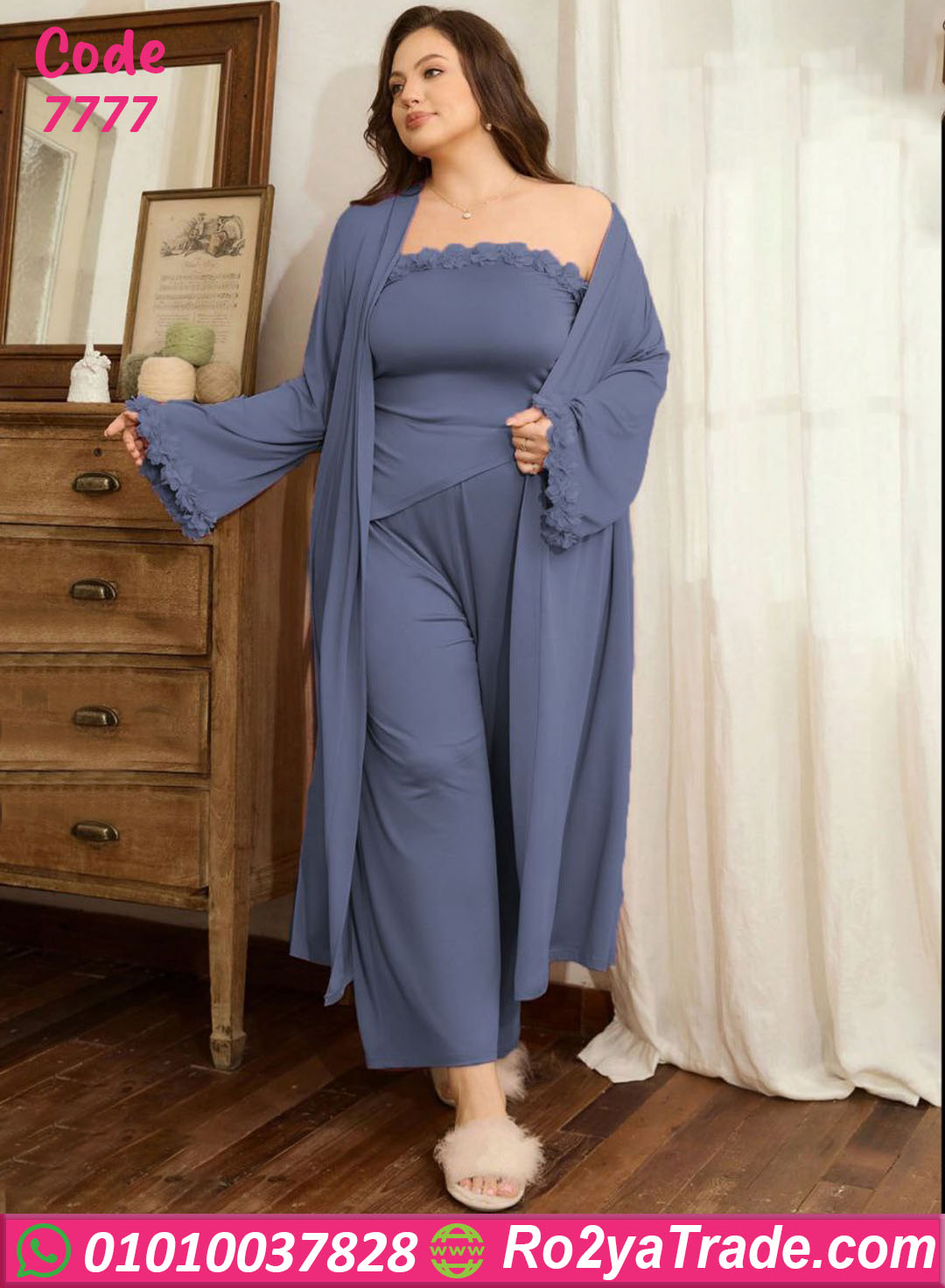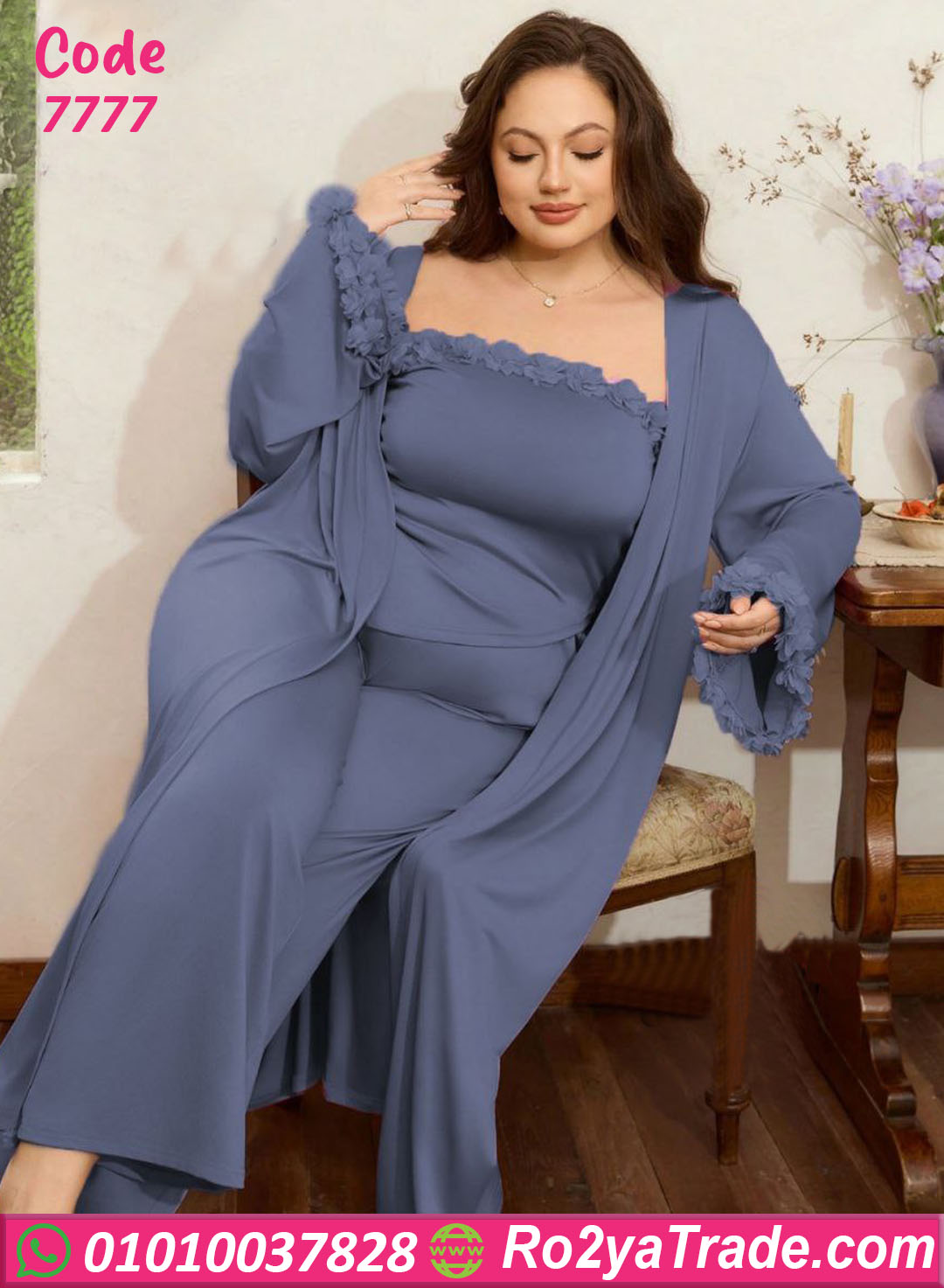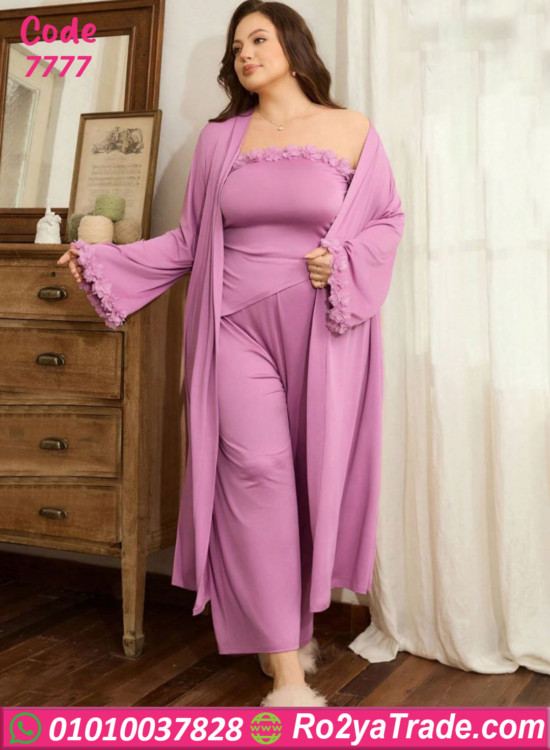 بيجامة حريمي موديل 7777 خامتها قطن خفيف وناعم على الجسم، بتمتص العرق ومناسبة للاستخدام اليومي لفترات طويلة.