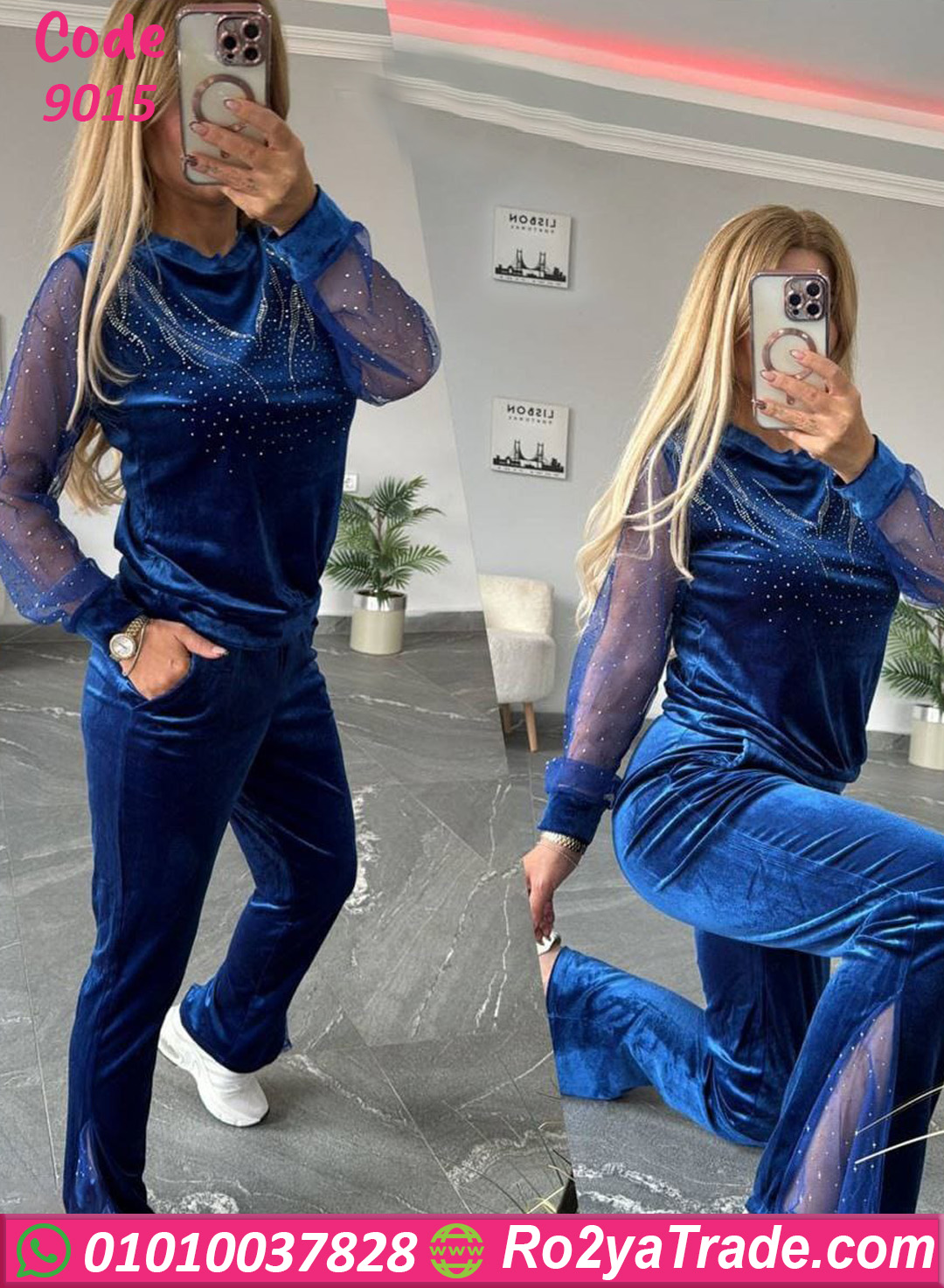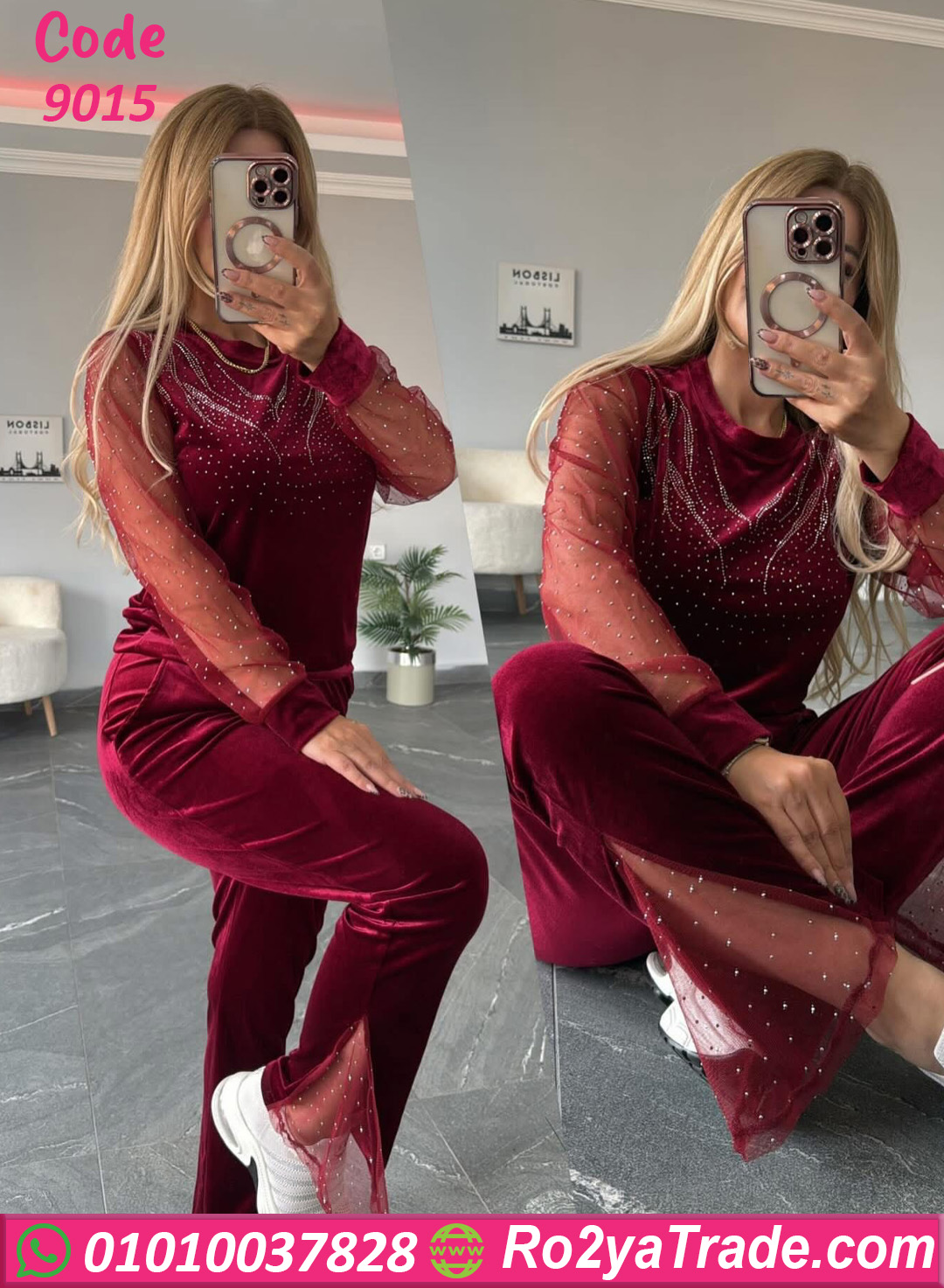بيجامة حريمي كود 9015 من ماركة Queen بتصميم راقي يجمع بين الأناقة والراحة. تتكون البيجامة من قطعتين (بلوزة وبنطلون) مصنوعة من خامة القطيفة الناعمة التي تمنح إحساس بالدفء في الأجواء الشتوية.