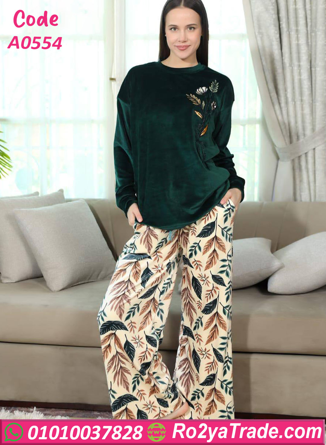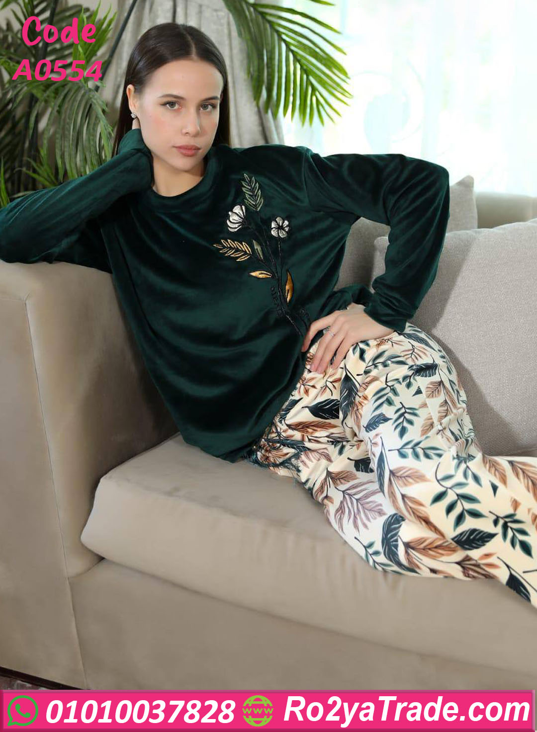 بيجامة حريمي قطيفة مطرزة – كود A0554