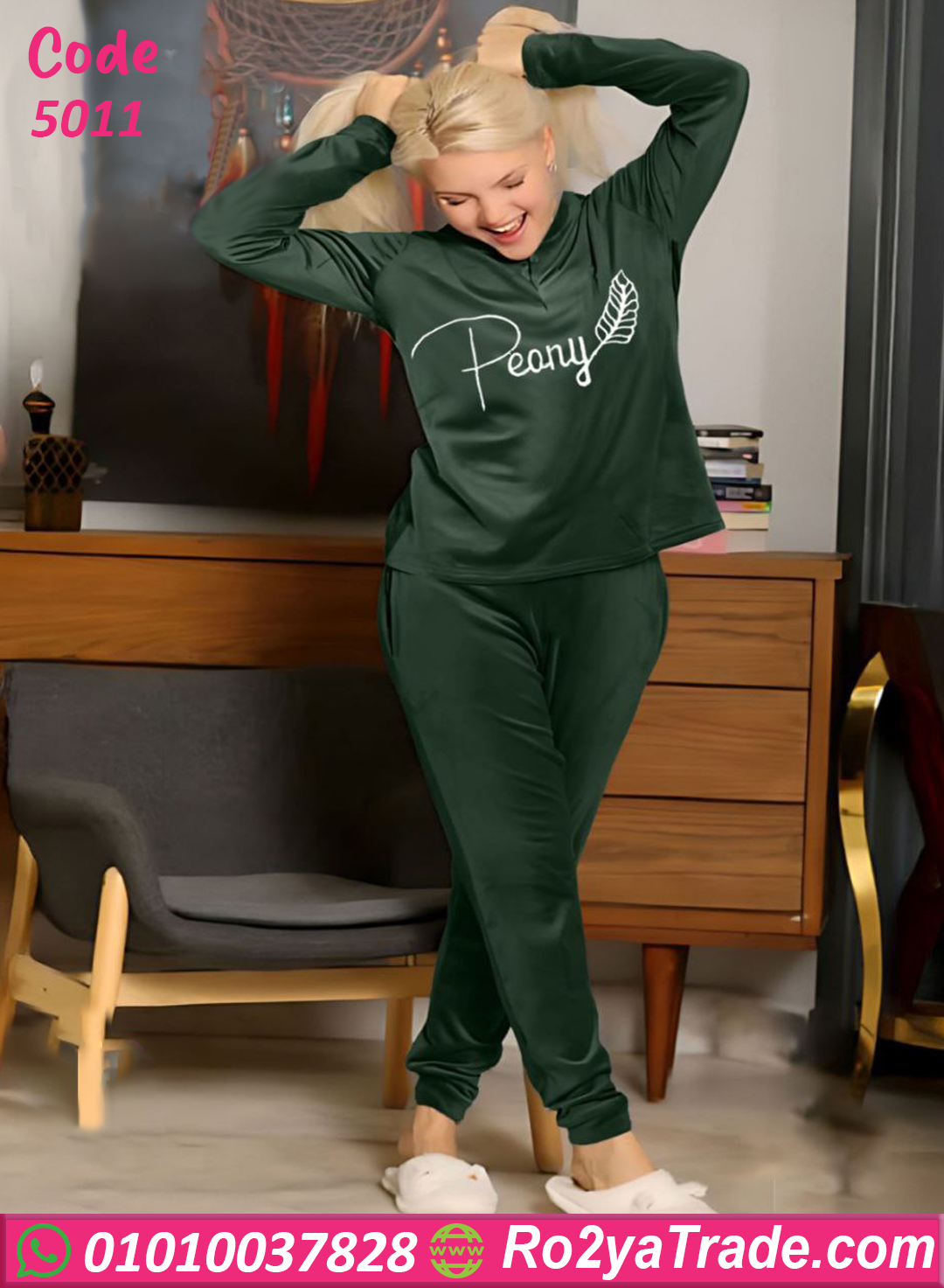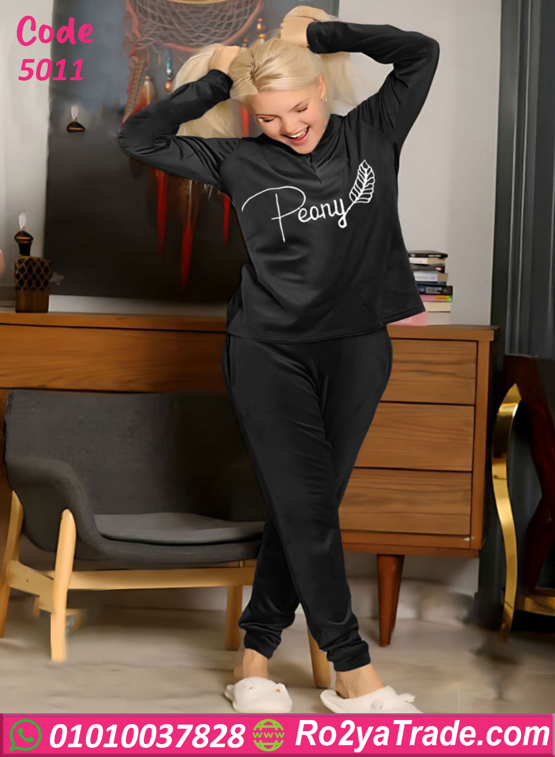 بيجامة شتوية أنيقة من خامة القطيفة الناعمة بتصميم عصري مطبوع عليه كلمة Peany بلمسة أنثوية بسيطة تضيف جمال وأناقة للبيت.
