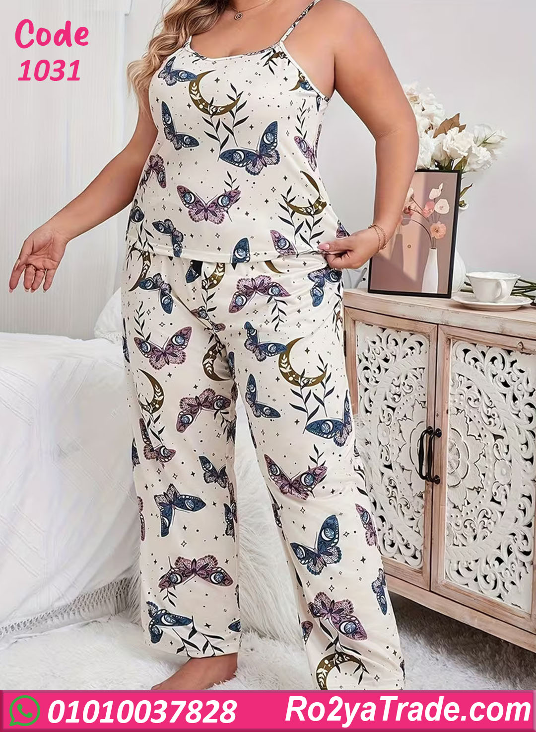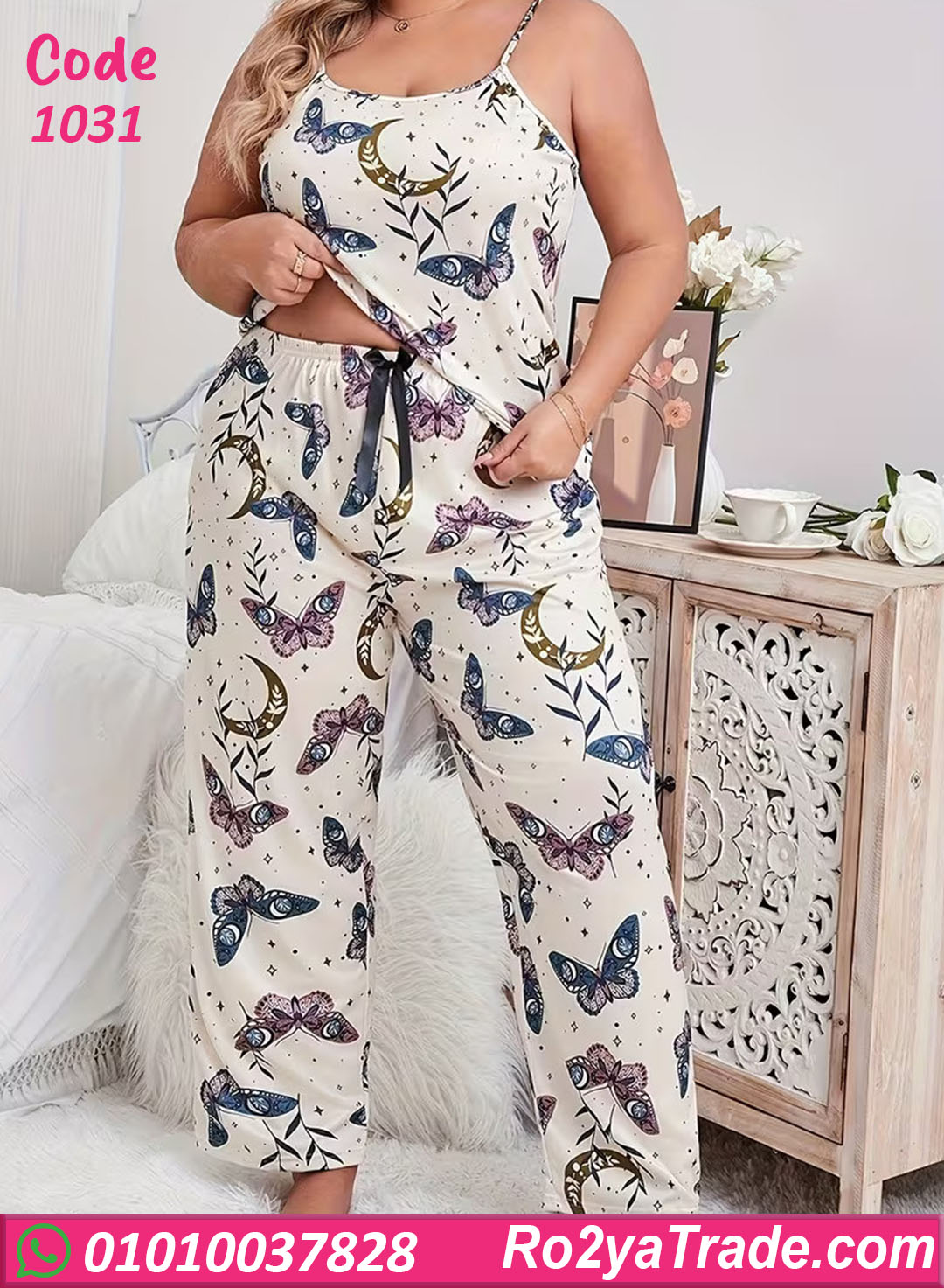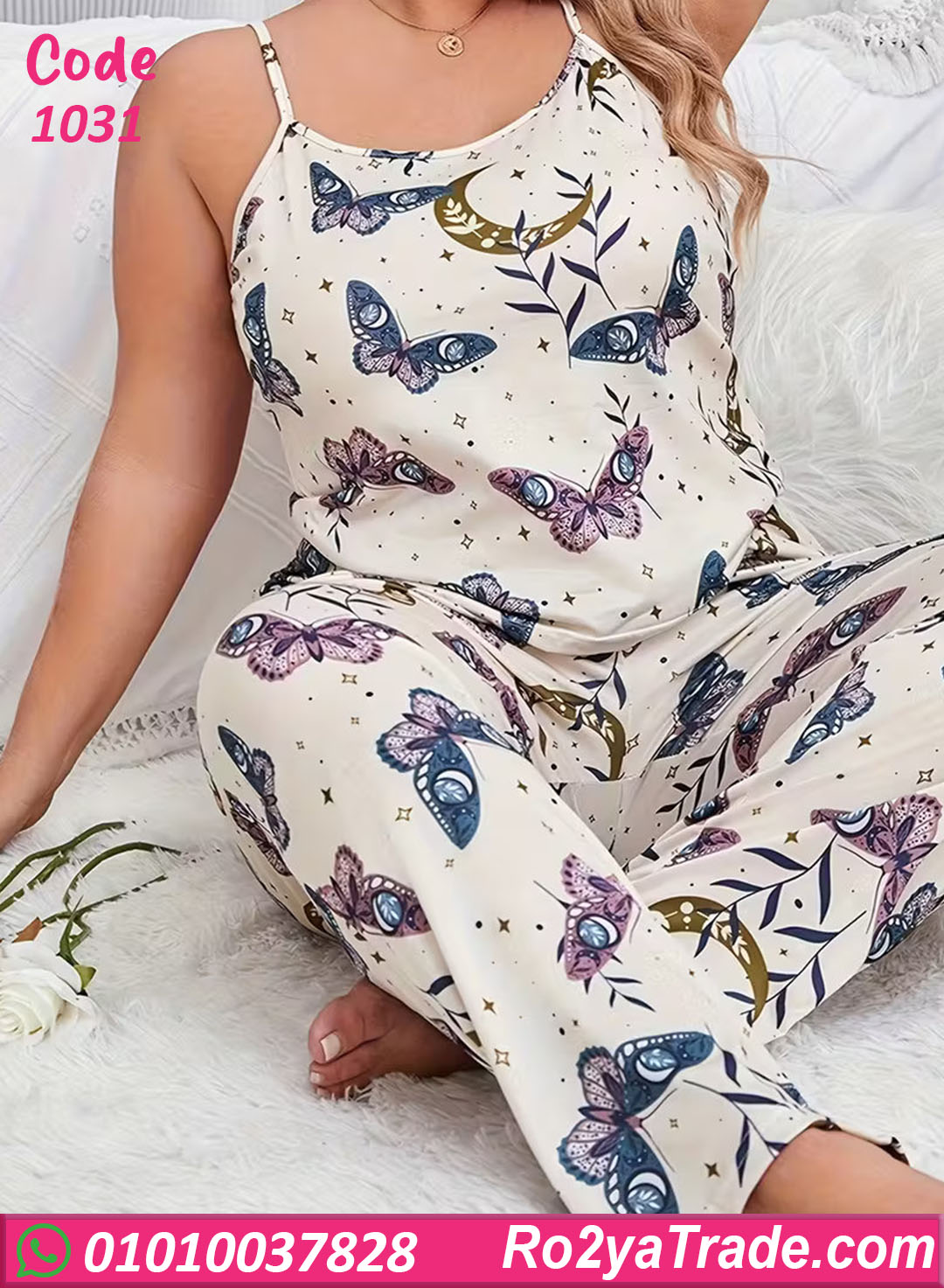 بيجامة حريمي صيفي مريحة بخامة ناعمة وخفيفة، تصميم عملي برسمة فراشات شيك، مناسبة للنوم والبيت وتدي إحساس راحة طول اليوم.