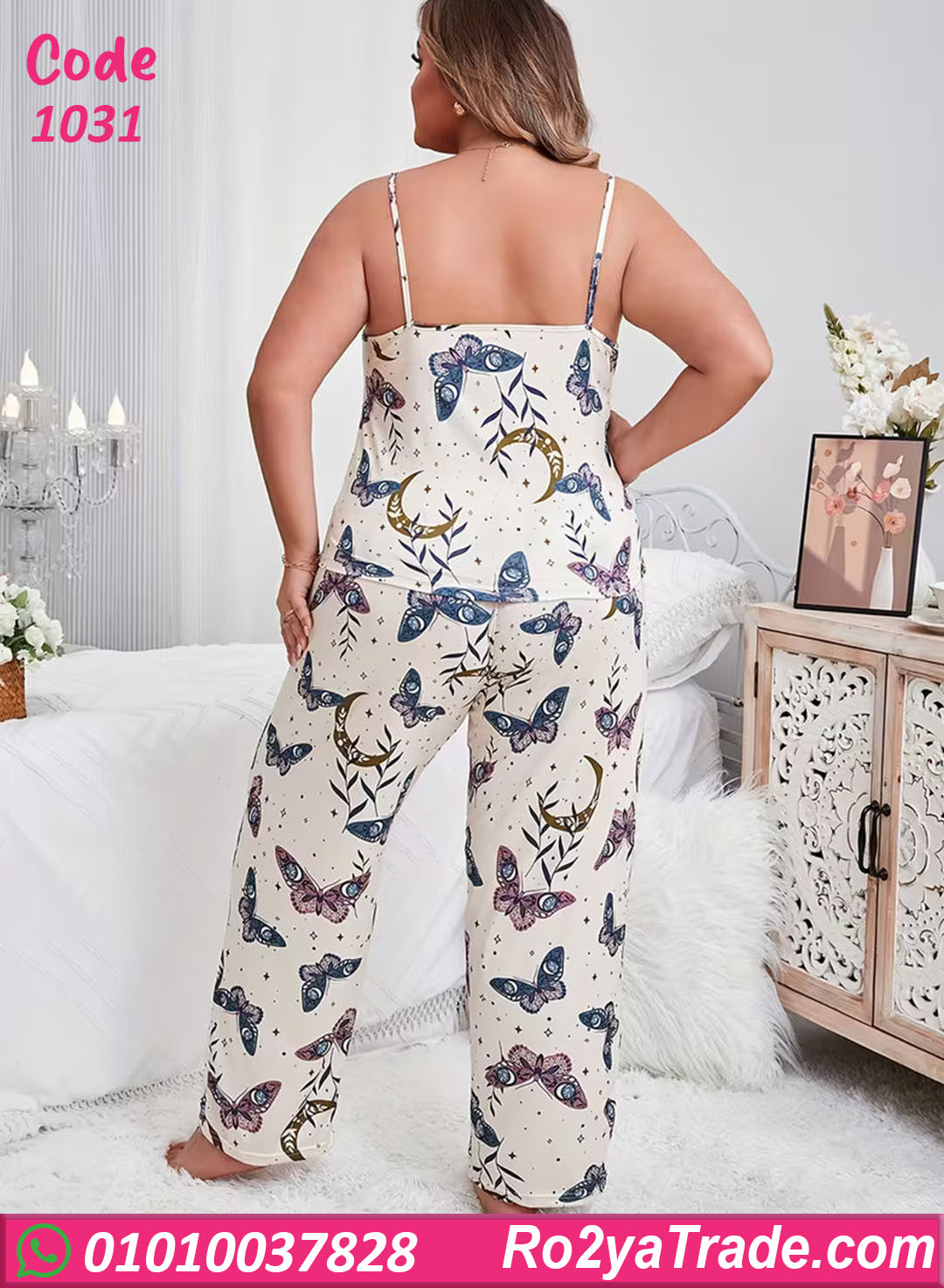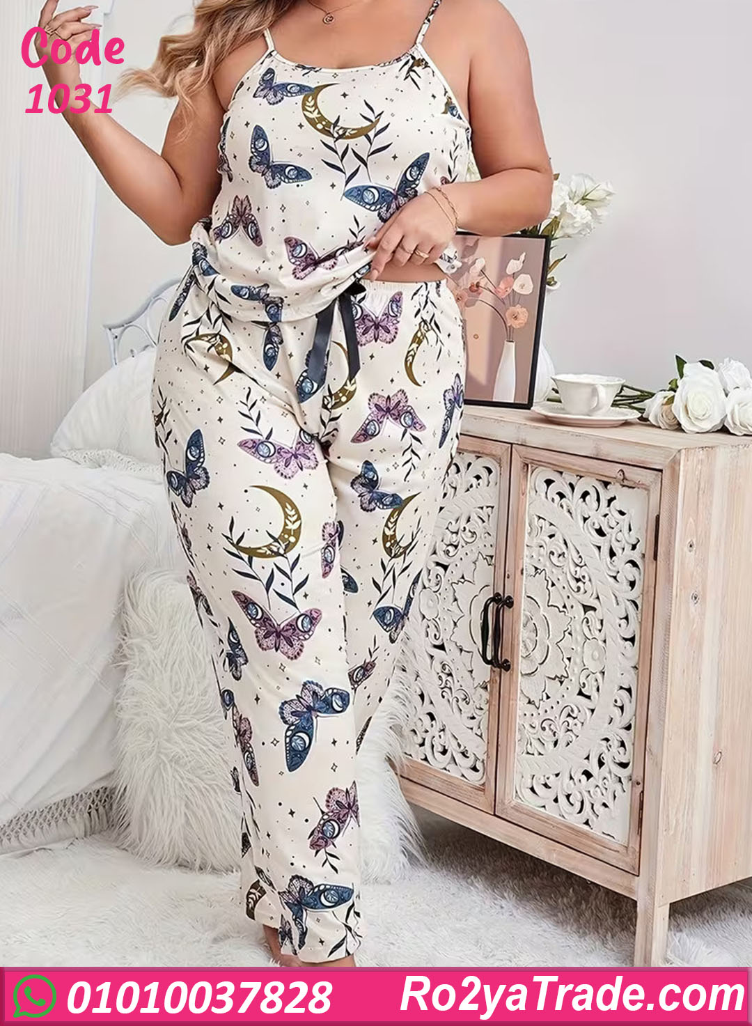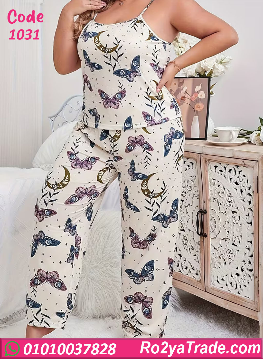 بيجامة حريمي صيفي مريحة بخامة ناعمة وخفيفة، تصميم عملي برسمة فراشات شيك، مناسبة للنوم والبيت وتدي إحساس راحة طول اليوم.