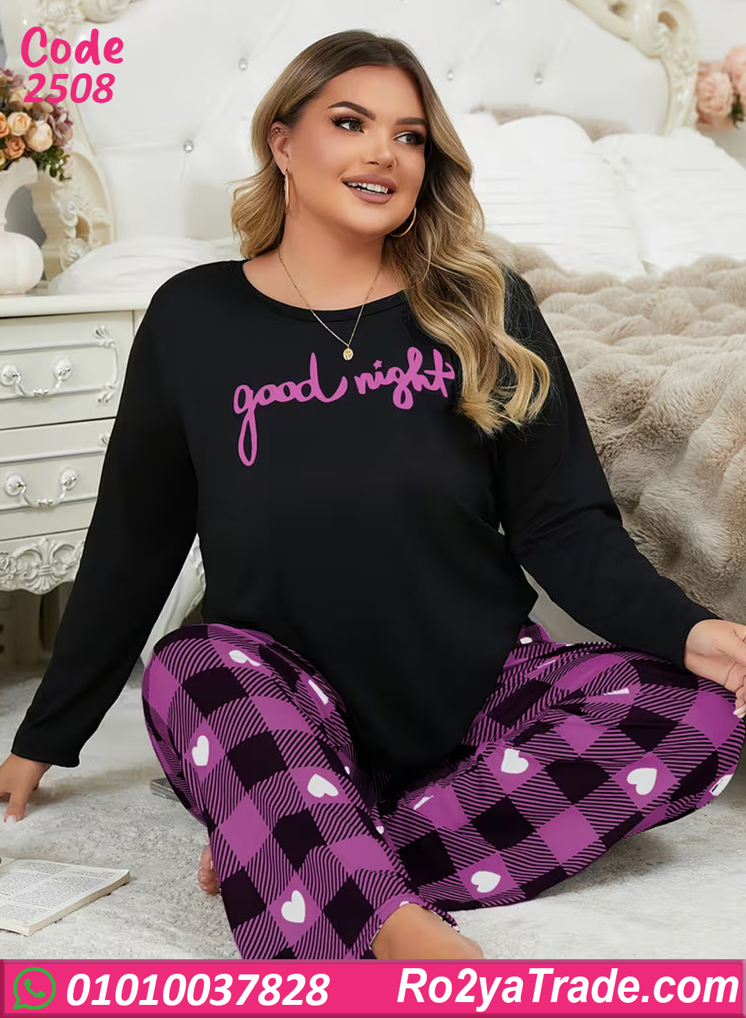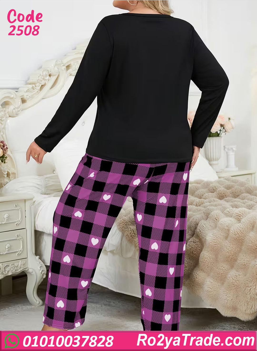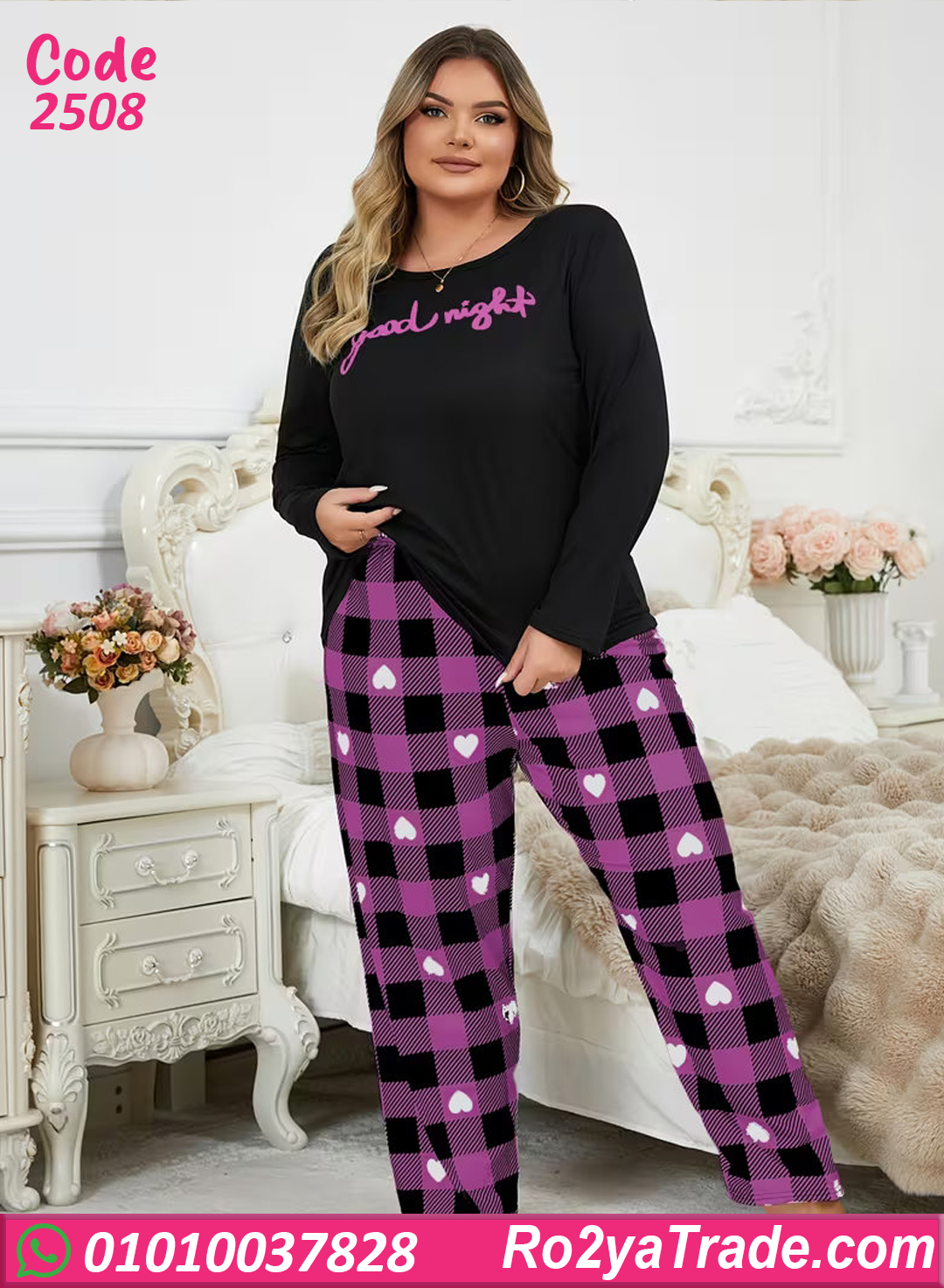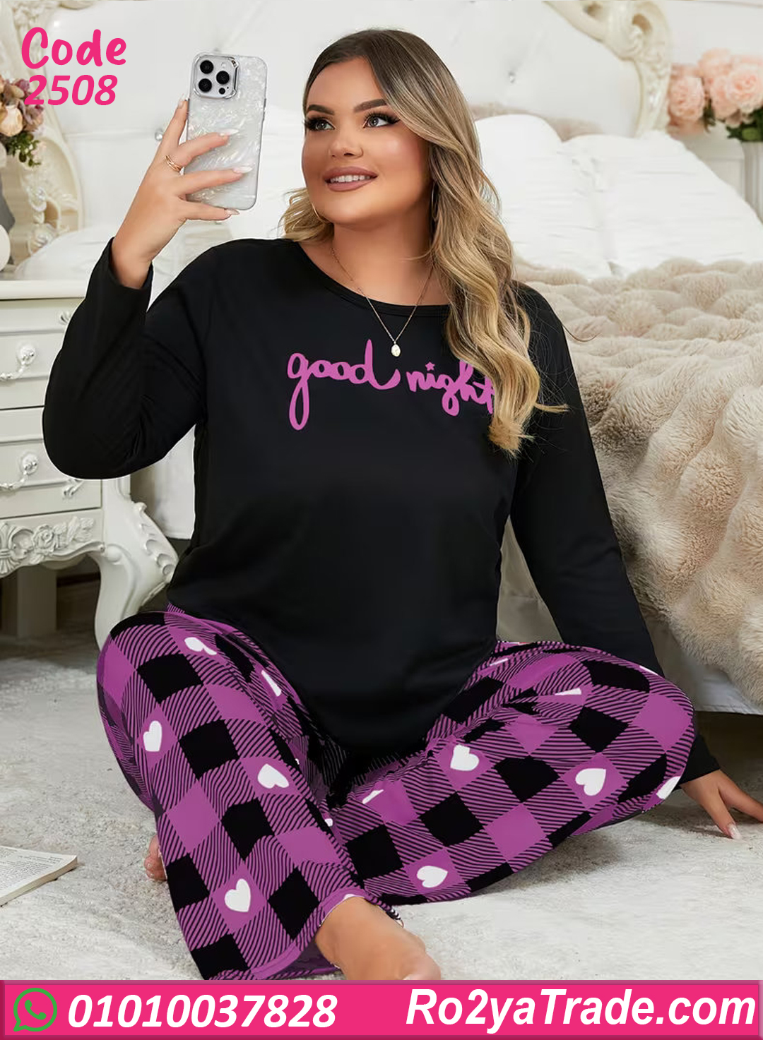 بيجامة حريمي شتوى بيج سايز مريحة بخامة ناعمة وخفيفة، تصميم عصري بطباعة شيك، مناسبة للنوم والاستخدام اليومي في البيت وبتدي راحة طول اليوم.