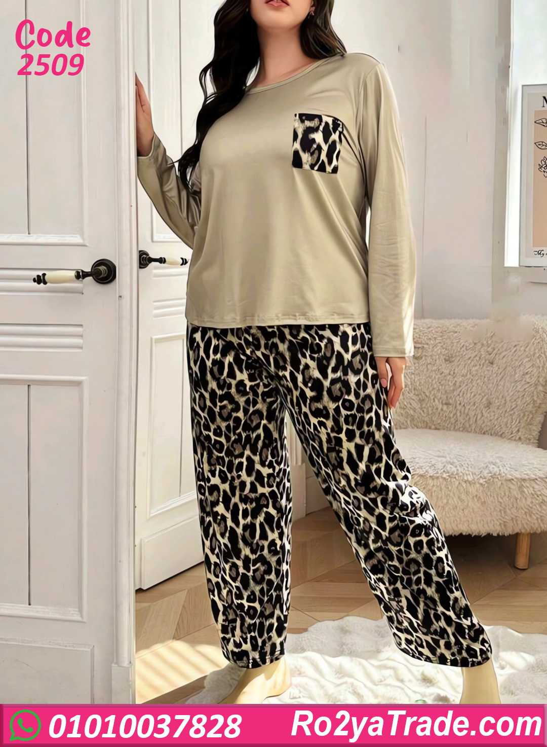 بيجامة حريمي شتوى كود 2509 اختيار عملي ومريح لكل ست بتدور على الراحة مع شكل شيك وعصري. البيجامة مكونة من قطعتين بتصميم واسع ومريح،